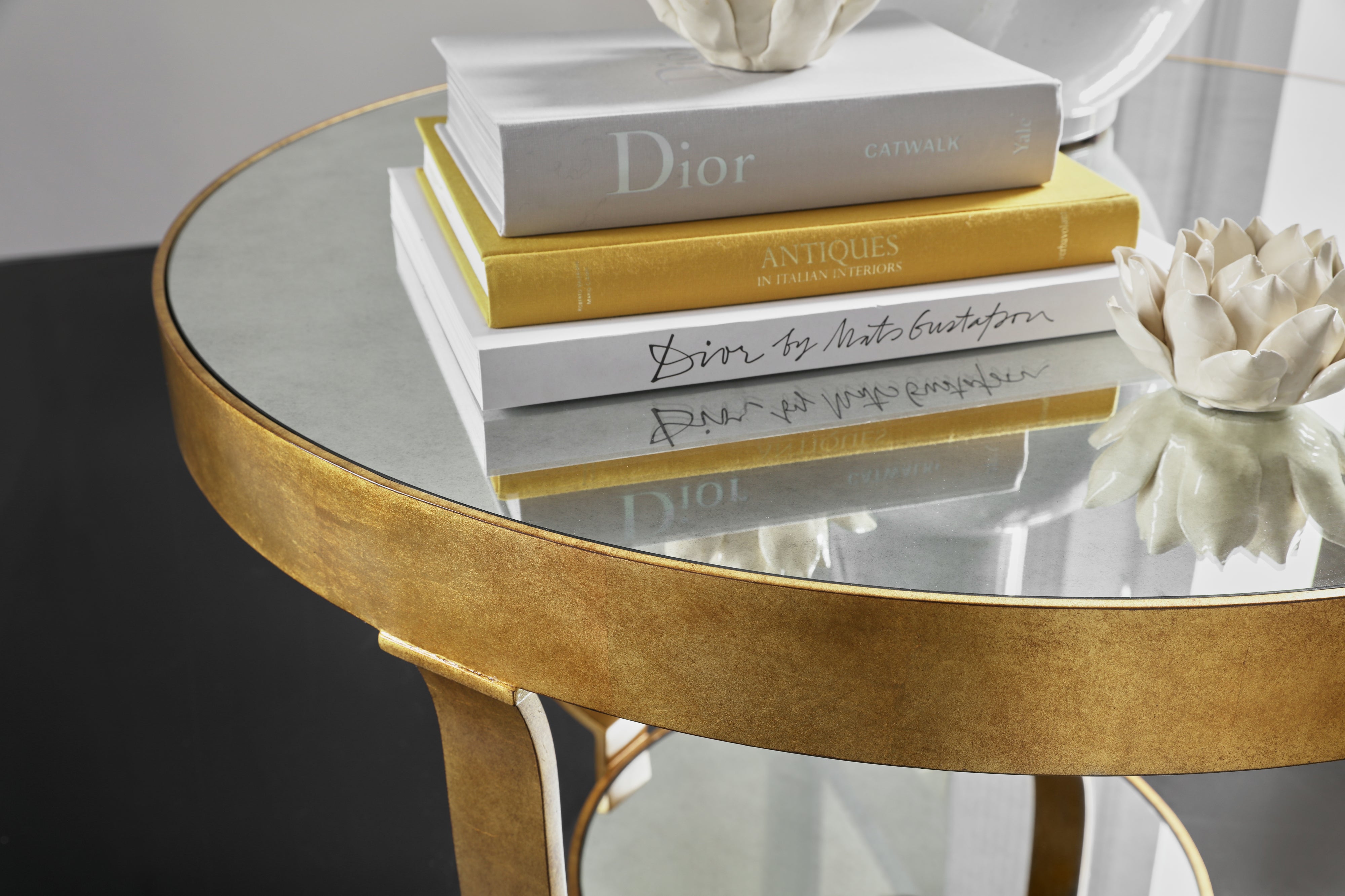 Features: Antique Mirror Glass Top & Bottom