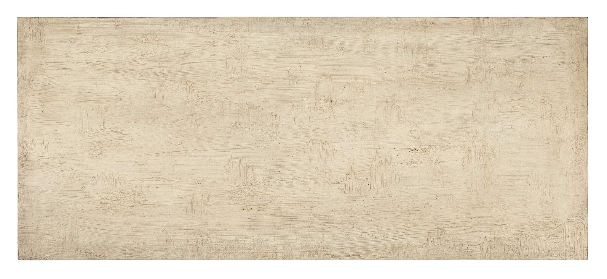 Simple and serene, the Saffron Chest is crafted of Maple Veneers with a textured cream-colored finish with cream drawer interiors, accented by antique pewter ribbed bar pulls.