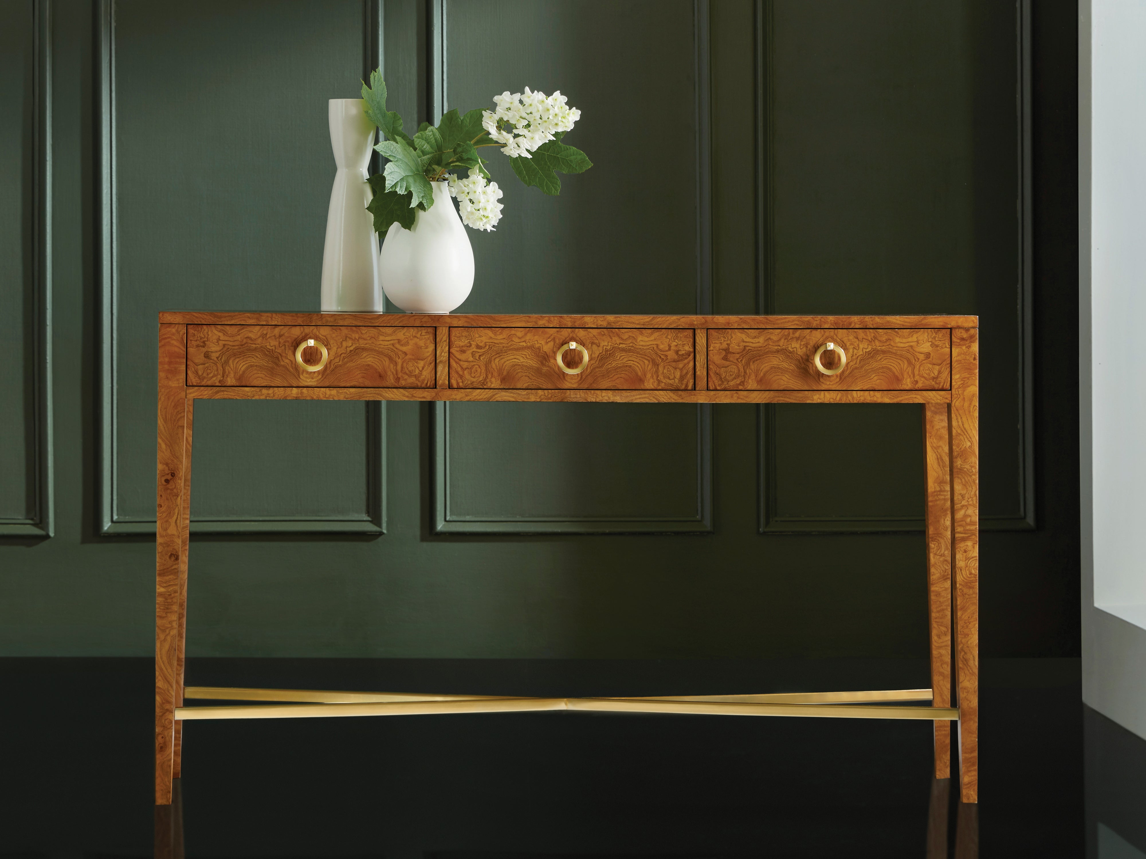 Modernist Three Drawer Hall Console - Burl | Modern History - MH1183F02