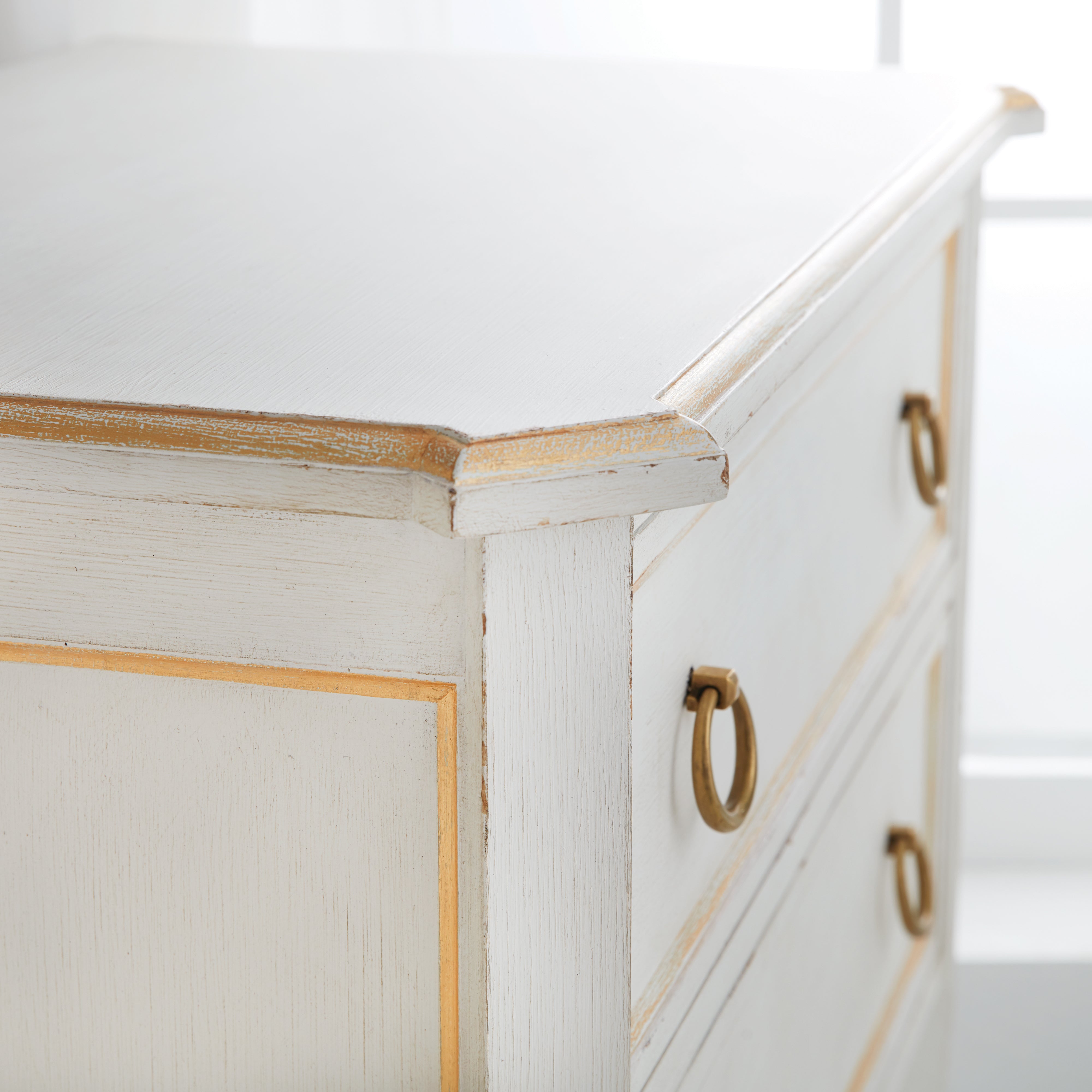 Features: Gold Leaf Detailing; Solid Brass Ring Pulls