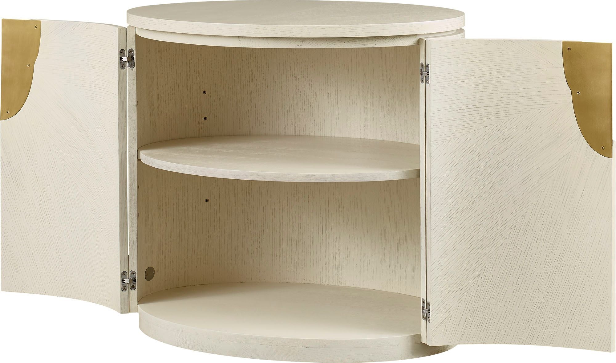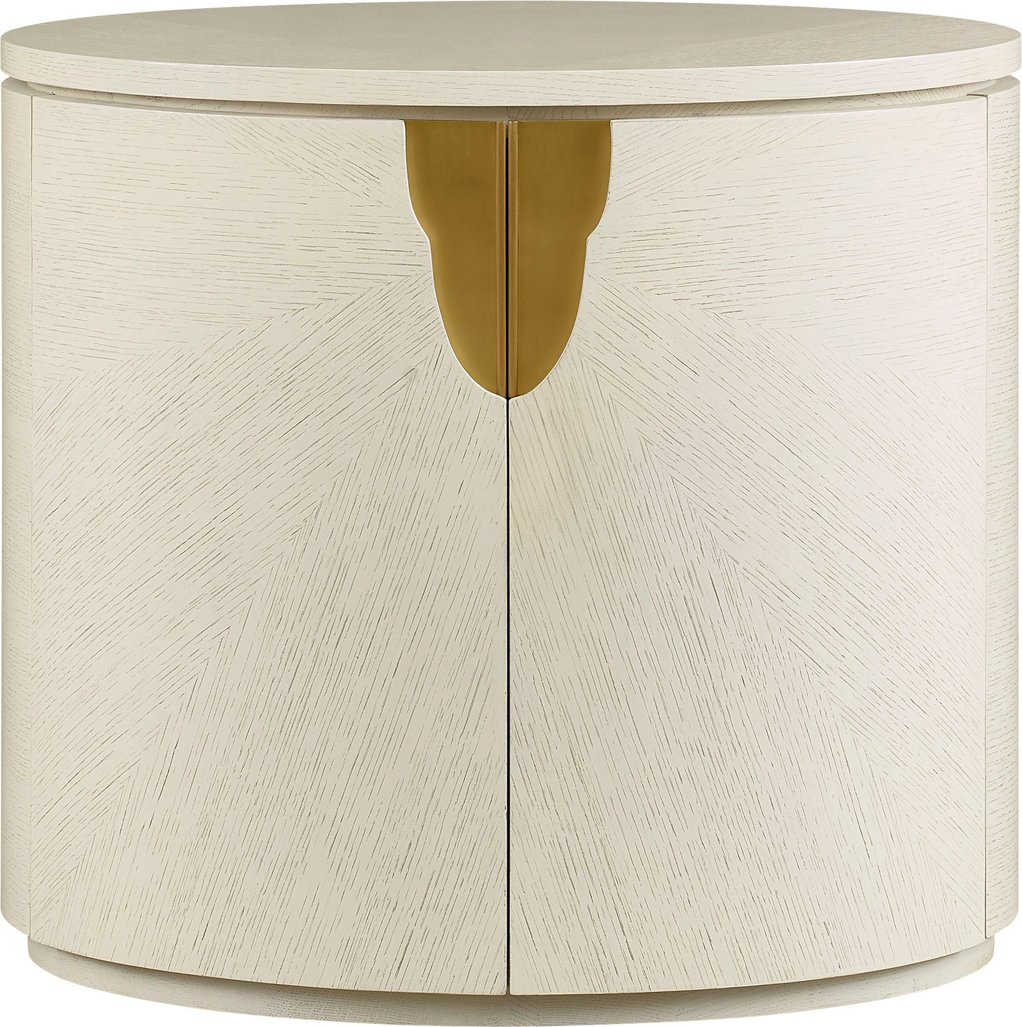 The Dover Bedside Table is radiant and energetic. Inspired by the sparkle of a sequined cocktail dress, this focal table is completely curvilinear with solid integrated bronze pulls.