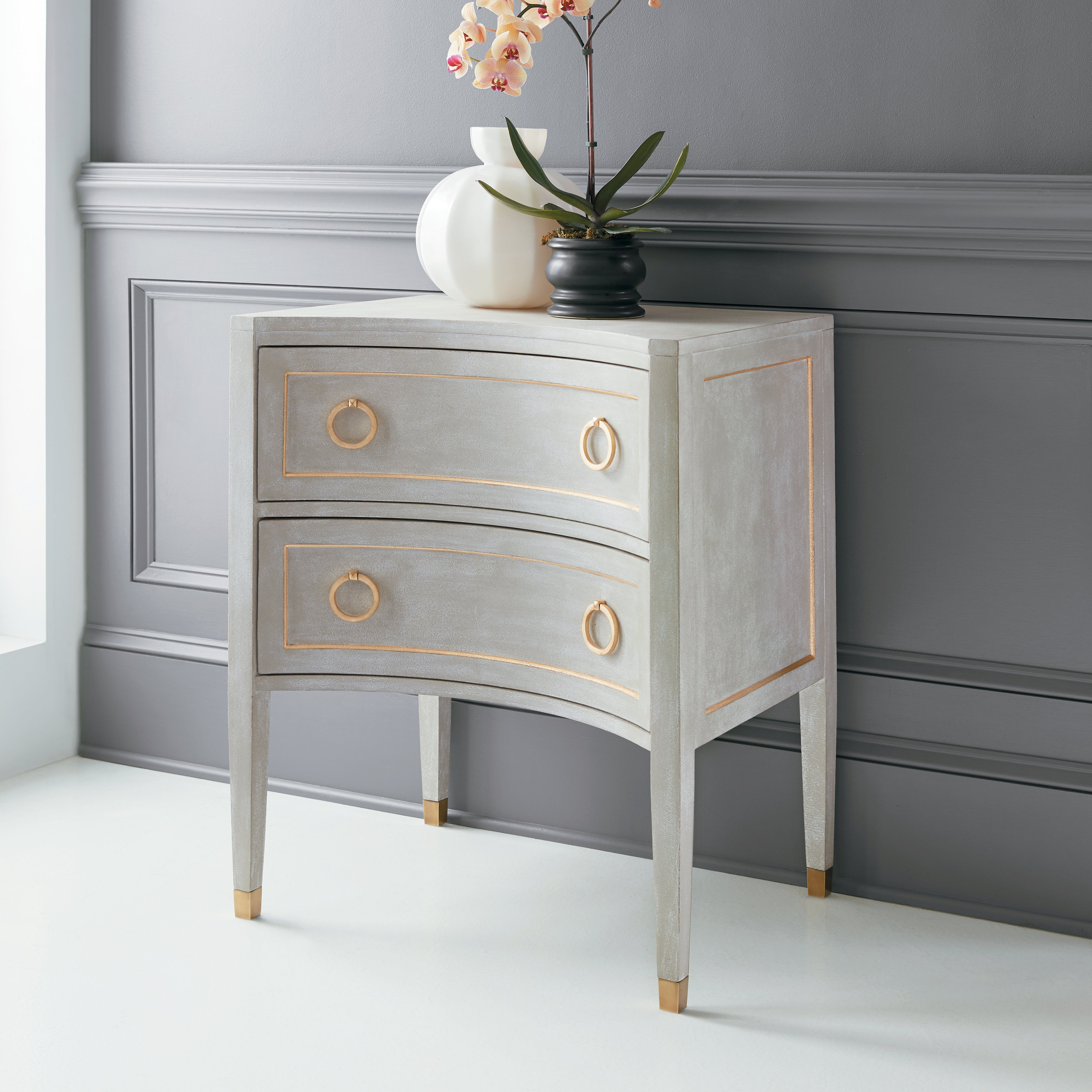 Gustavian Two Drawer Concave Nightstand | Modern History - MH889F01