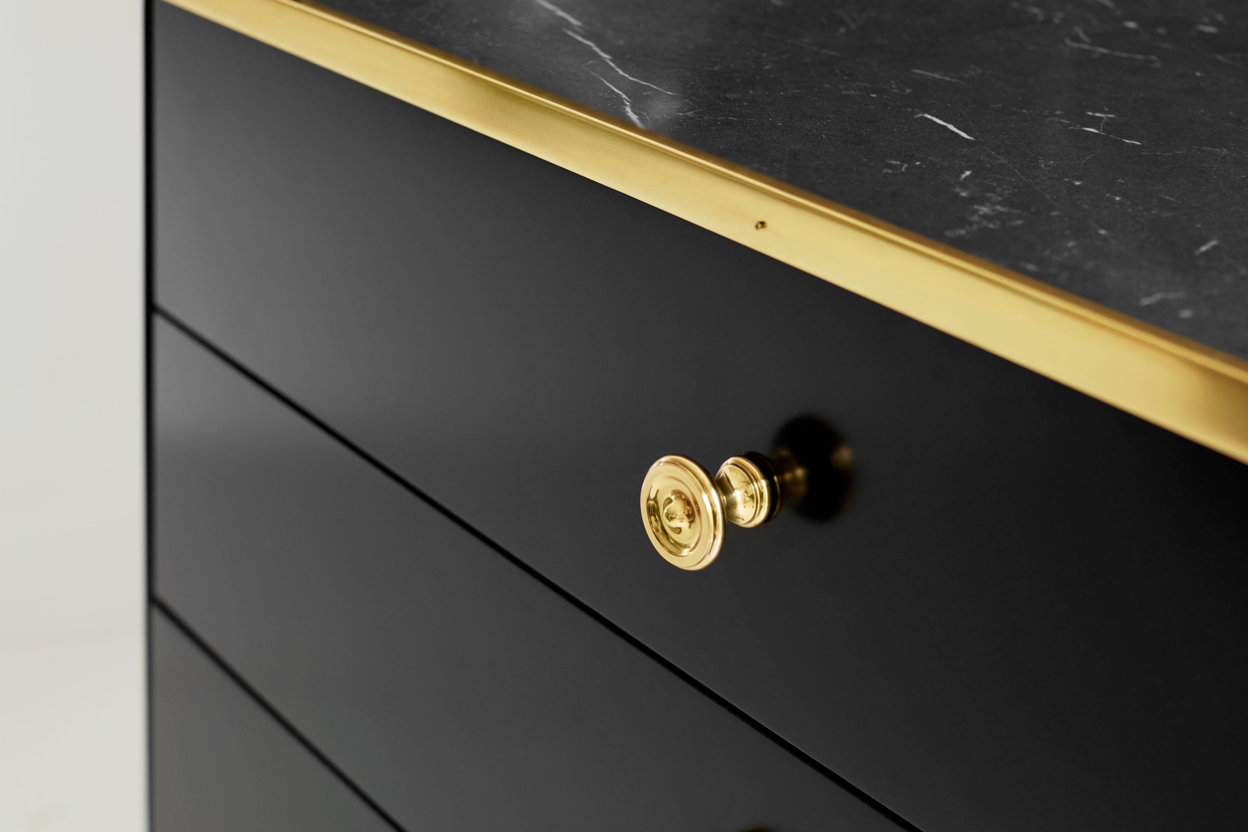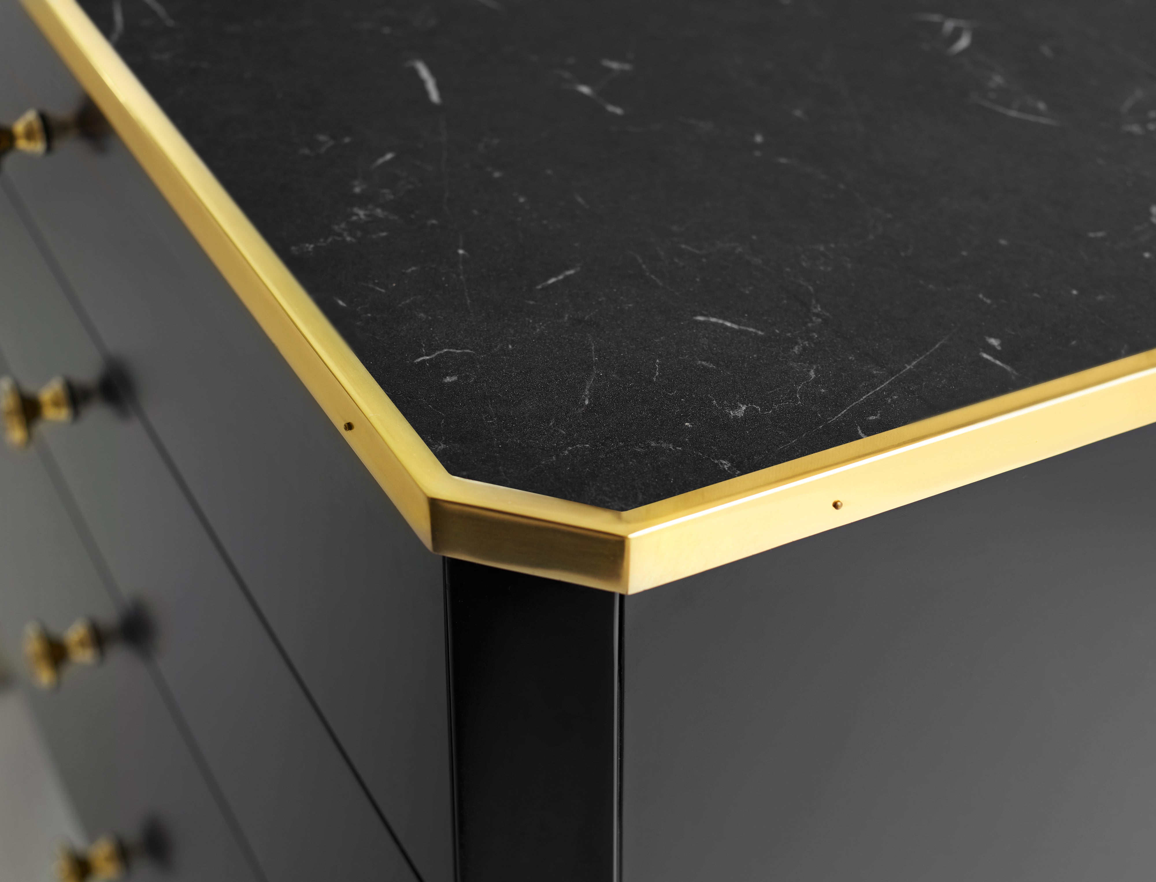 Features: Brass Accents & Hardware; Black Marble Top