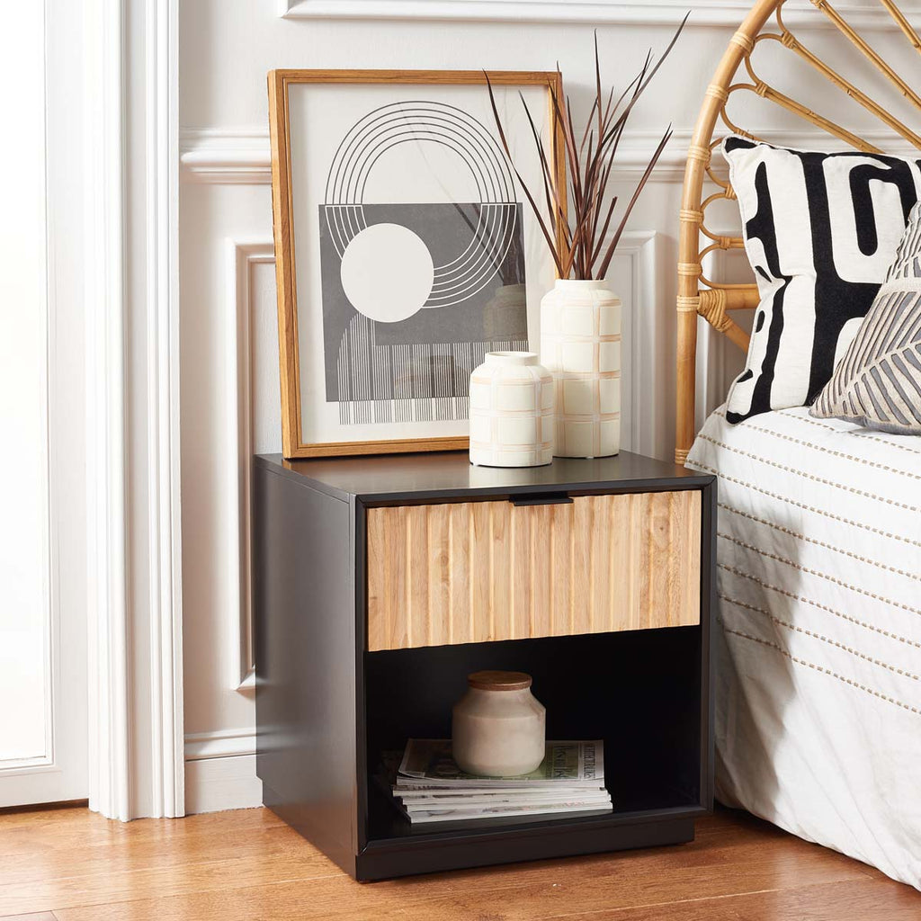 Safavieh Grayden 1 Drawer Nightstand - Black Body / Natural Front Drawer