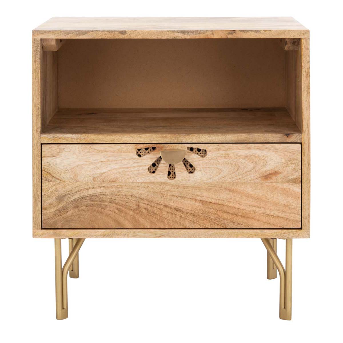 Safavieh Lily 1 Shelf 1 Drawer Nightstand - Natural / Brass