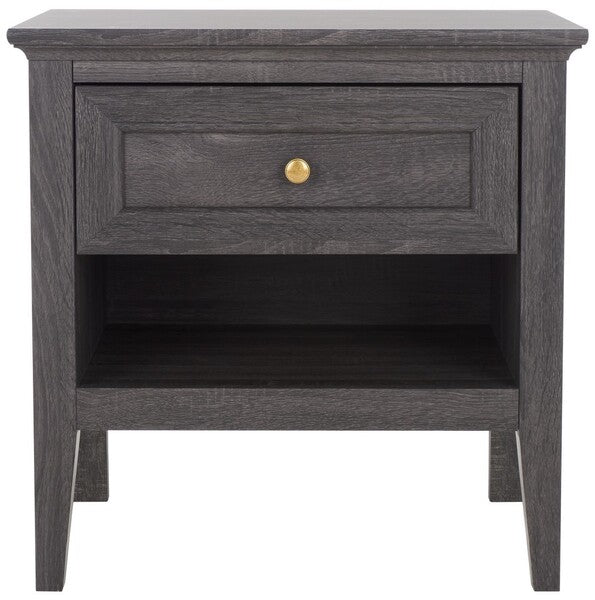 Bring timeless elegance to your bedside with our Sondra nightstand. Elegant details and the warm, rich grain appeal make our nightstand a charming and versatile addition. A stunning paneling upon the cabinet and round gold pulls bring traditional charm to our side table. Showcasing a deep finish, our nightstand is sure to add a dose of warmth and elegance to your bedroom. It features an open shelve and drawer to keep your nighttime essentials organized and within easy reach.