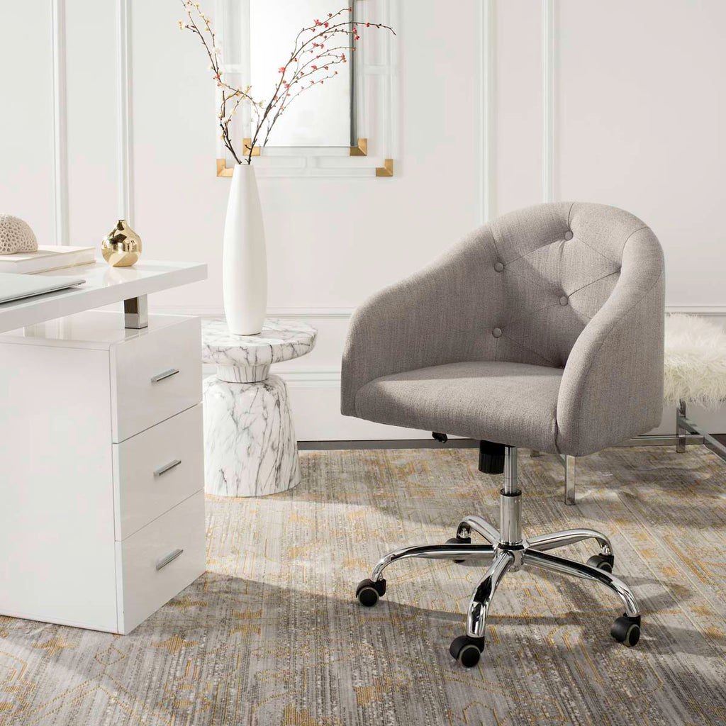 Safavieh Amy Tufted Linen Chrome Leg Swivel Office Chair - Grey / Chrome