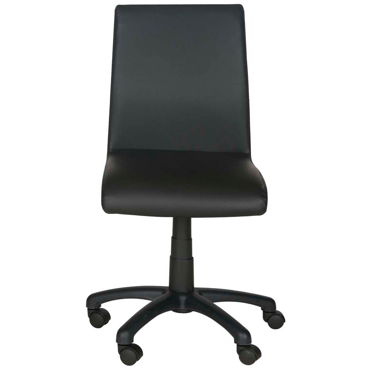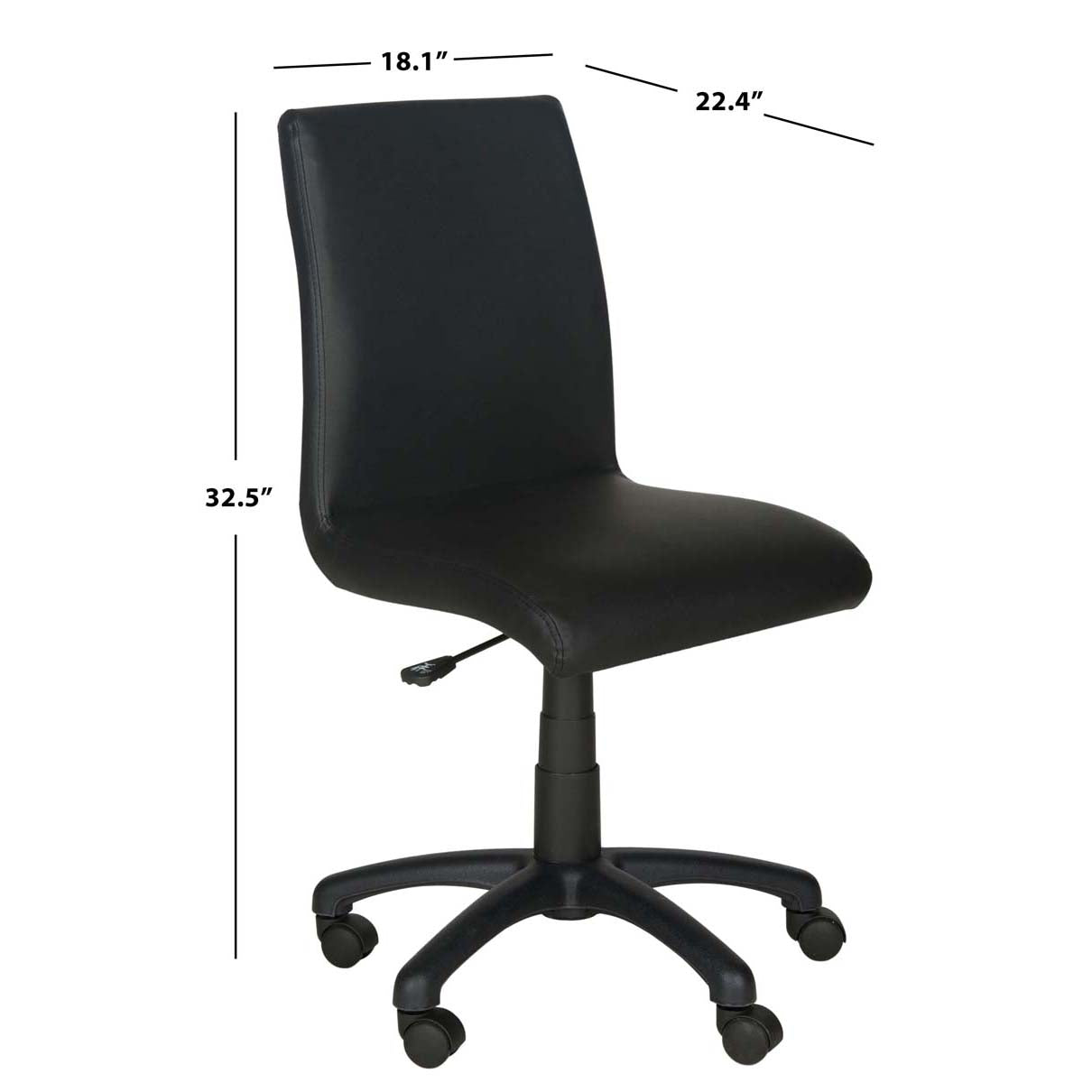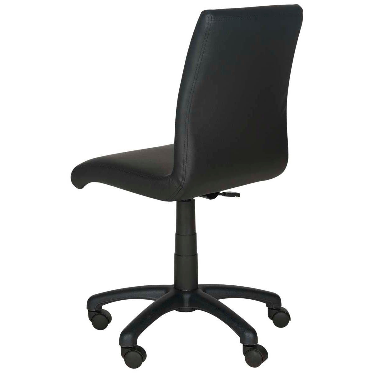 There can there be fun in functional with this tall, armless black PVC faux leather desk chair. It brings any office space up to date with clean, modern lines, an adjustable, durable seat and plastic wheels that glide to make 9 to 5 the new happy hour.