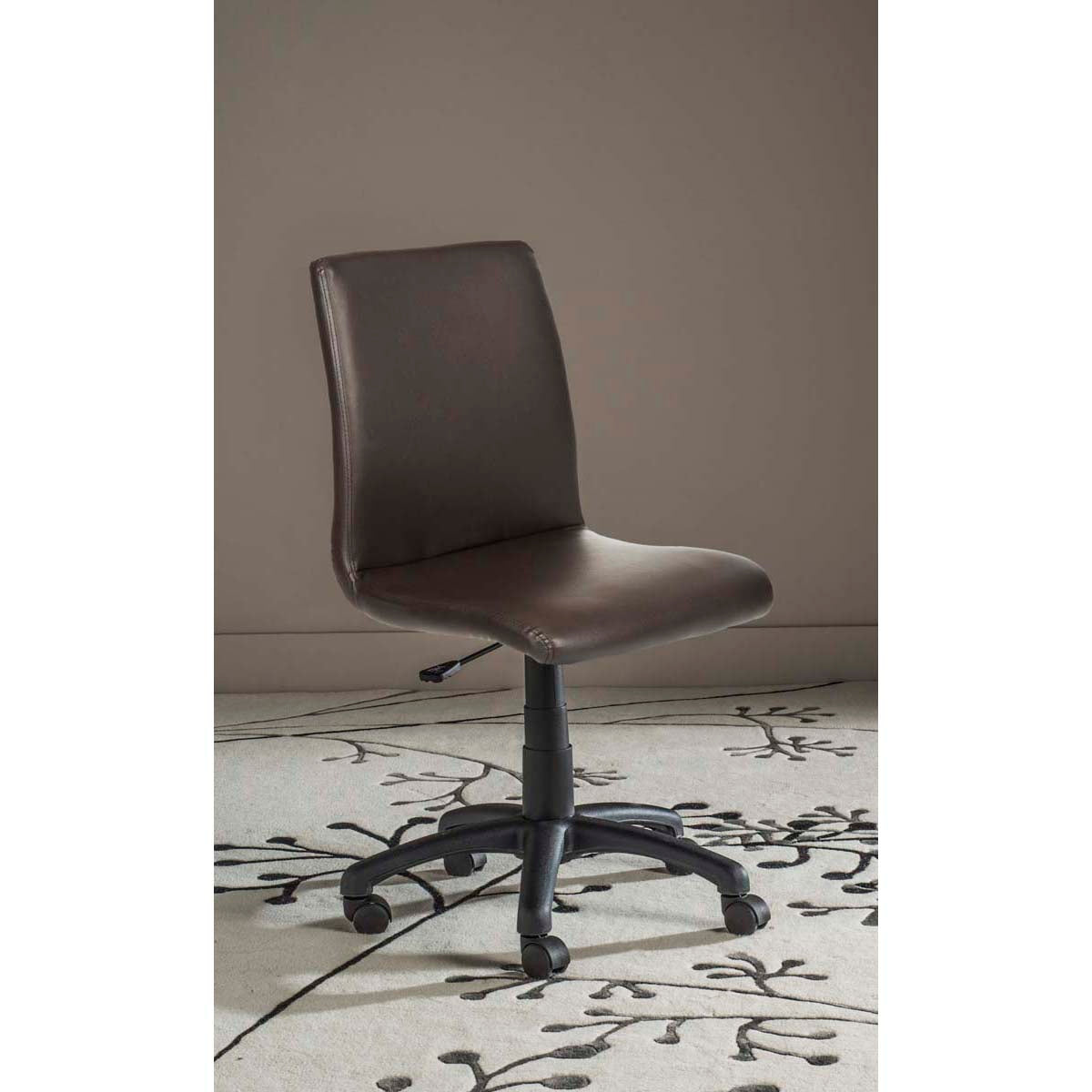 Yes, there can there be fun in functional. The tall, armless Hal Desk Chair brings any office space up to date with its clean, modern lines. Upholstered with brown PVC faux leather, its adjustable, durable seat and rubber wheels make 9 5 the new happy hour.