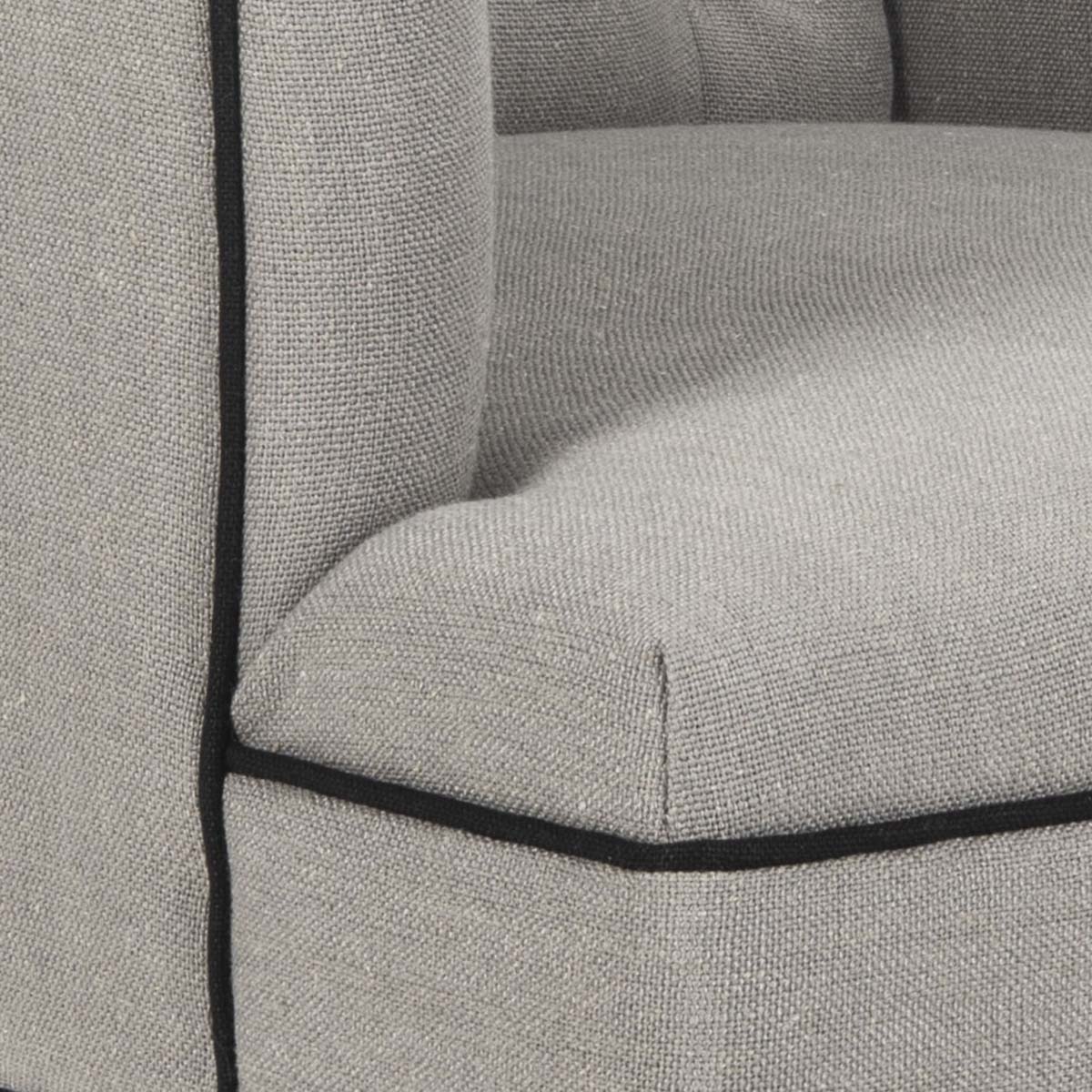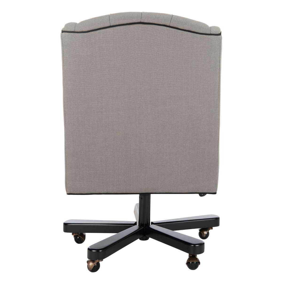 Inspired by English cigar lounge seating, this high back diamond tufted Nichols Office Chair is lavishly upholstered in granite linen with contrasting black cording. Designed for ergonomic comfort, Nichols glides on a black metal base with versatile casters.