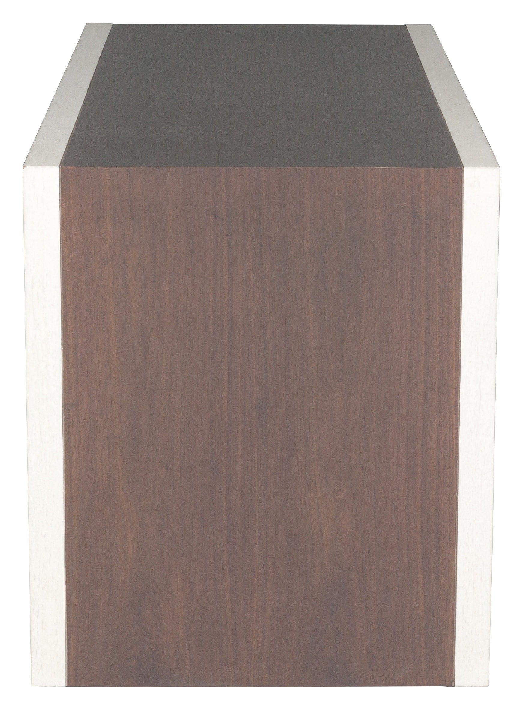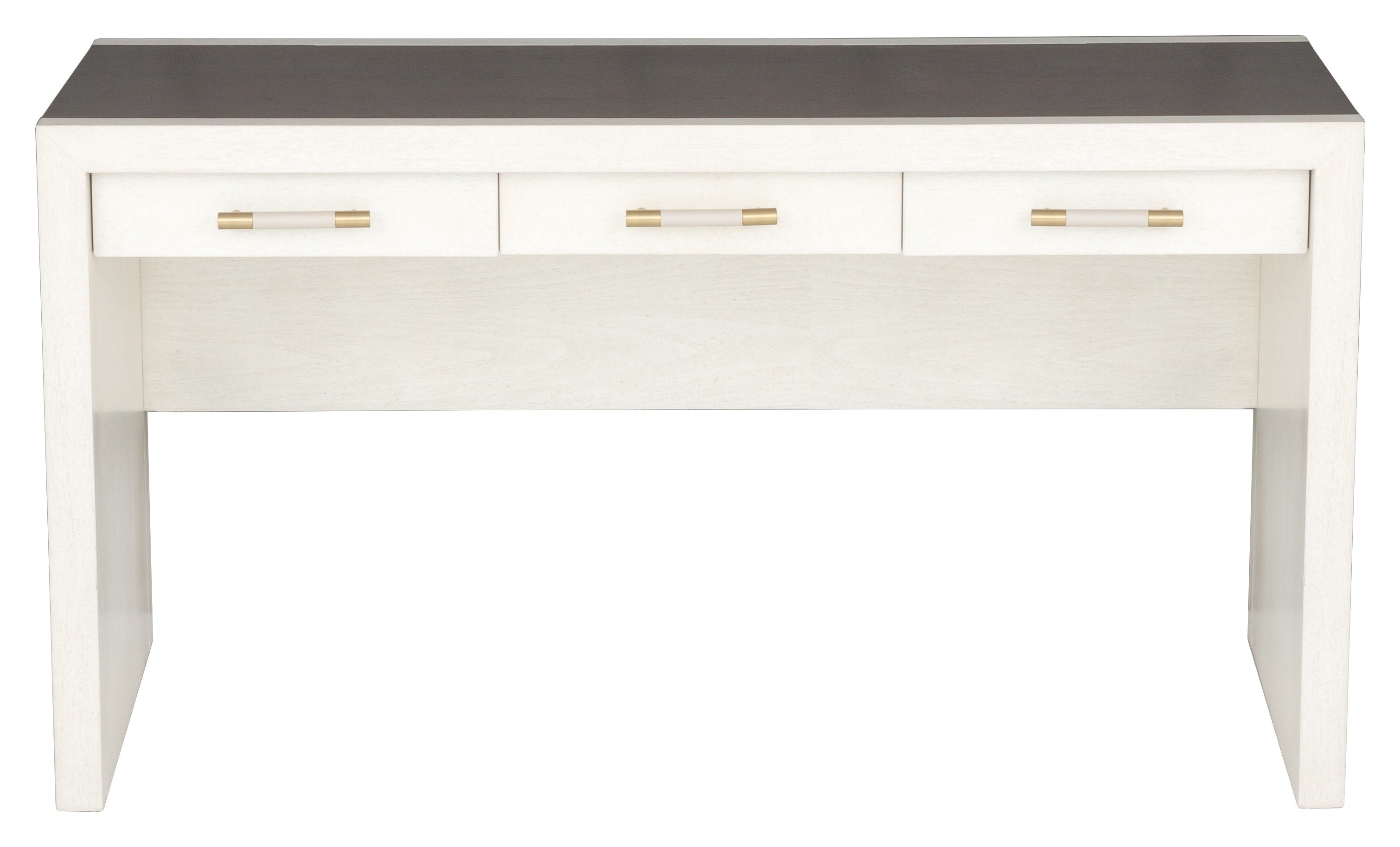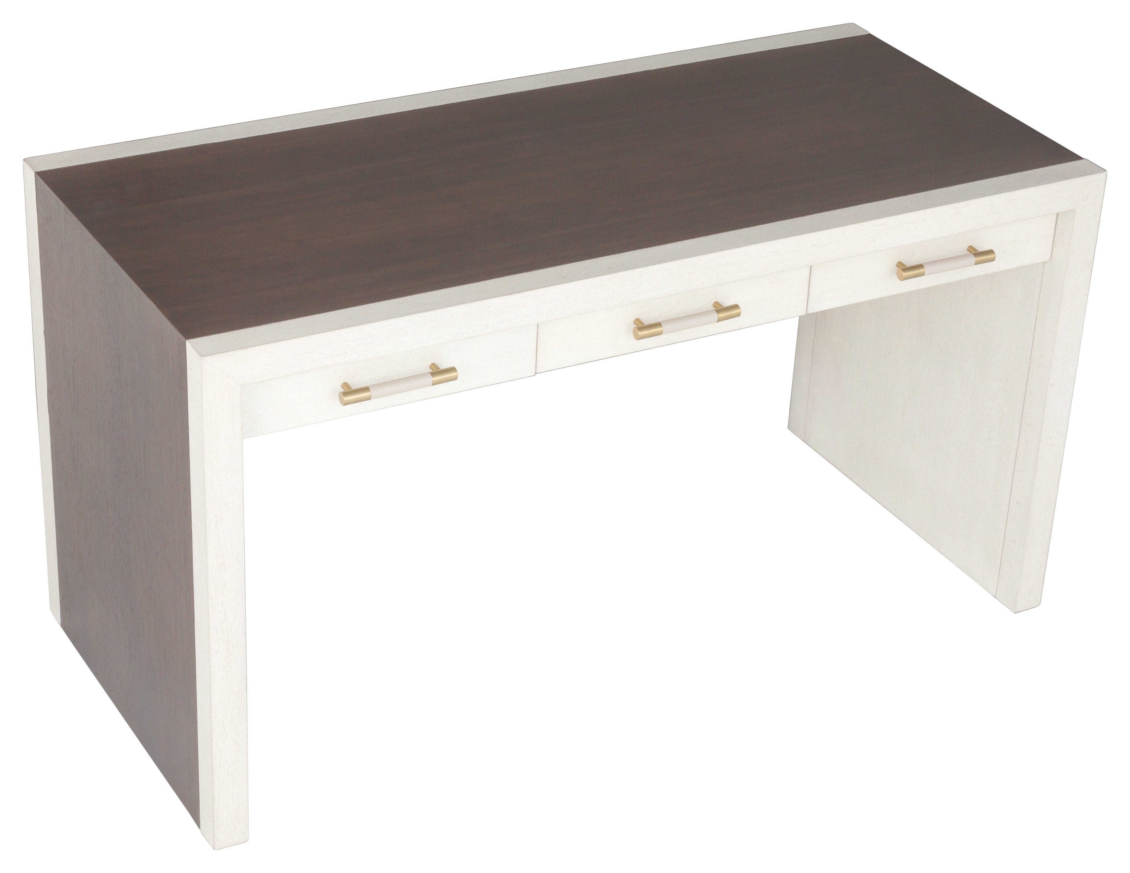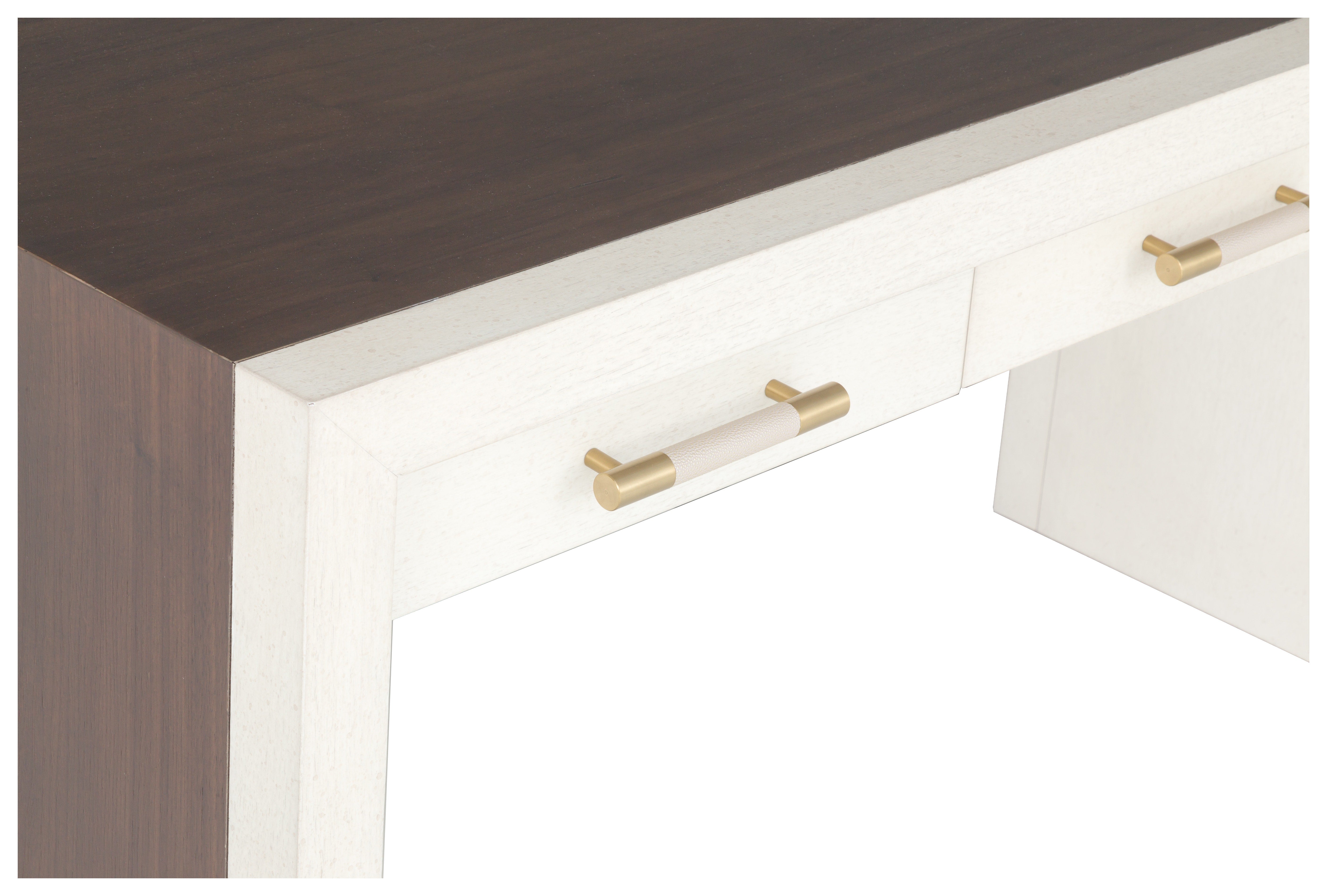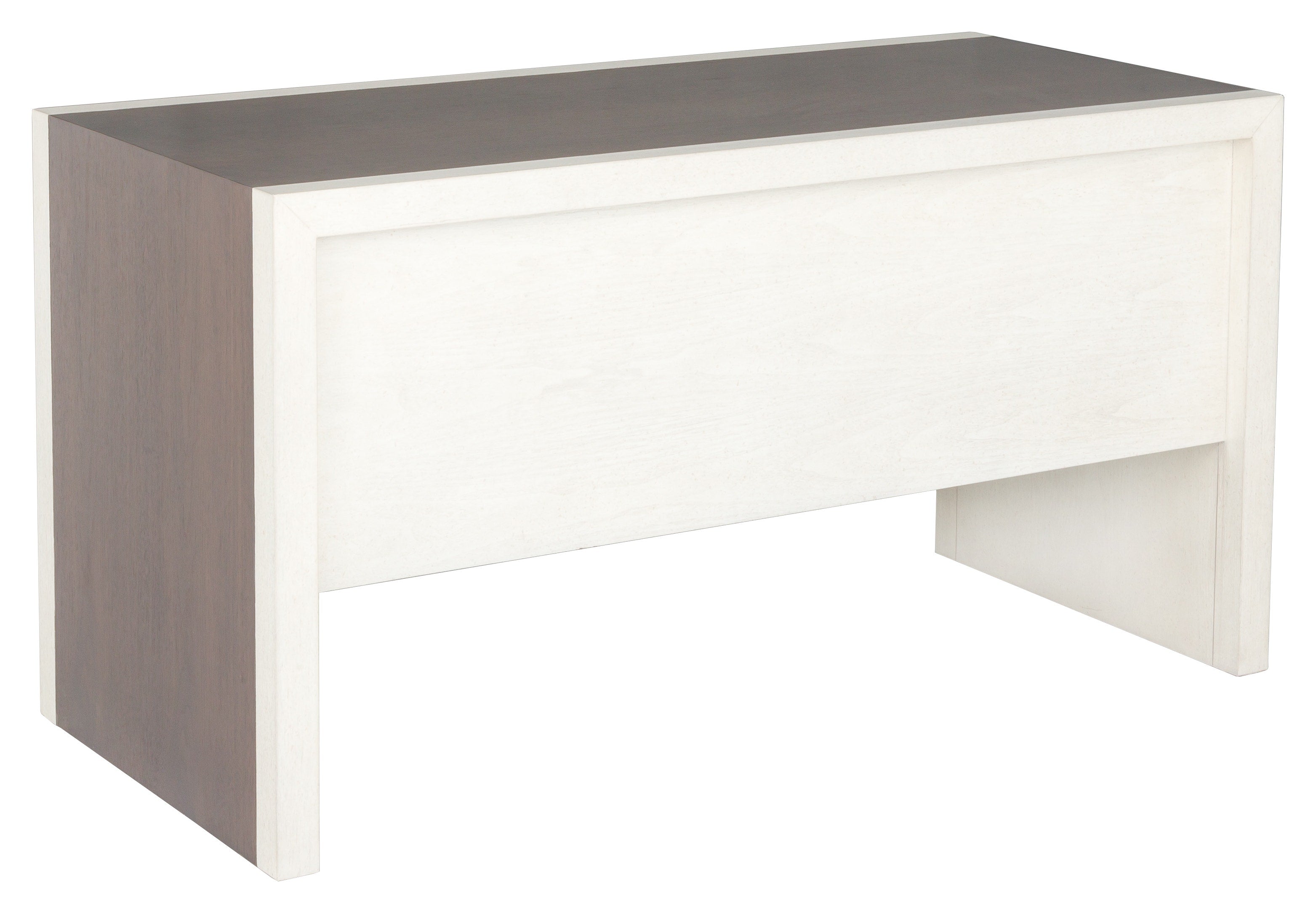 The Hillside Writing Desk is a clean lined desk that adds visual interest with a centered waterfall detail across the top and down the sides in rich grained walnut veneer. The deceivingly simple shape can still act as a statement piece and is as functional as it is beautiful. The outer frame section is in ash wood and in a contrasting lighter Linen finish while the center walnut section is in a darker Smoke Stone finish that allows you to appreciate the movement and natural elements of the wood. The Hillside writing desk can work well in all different design styles from contemporary to classic.