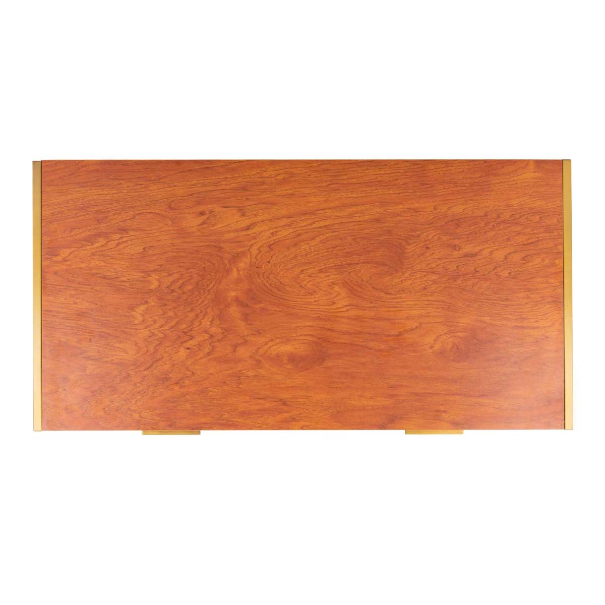 An instant promotion for any office design, this contemporary 1 drawer desk brings style and substance to the workplace. Its beautiful natural finish is paired with a sculptural geometric frame finished in luxurious gold. Ample drawer space ensures organization.
