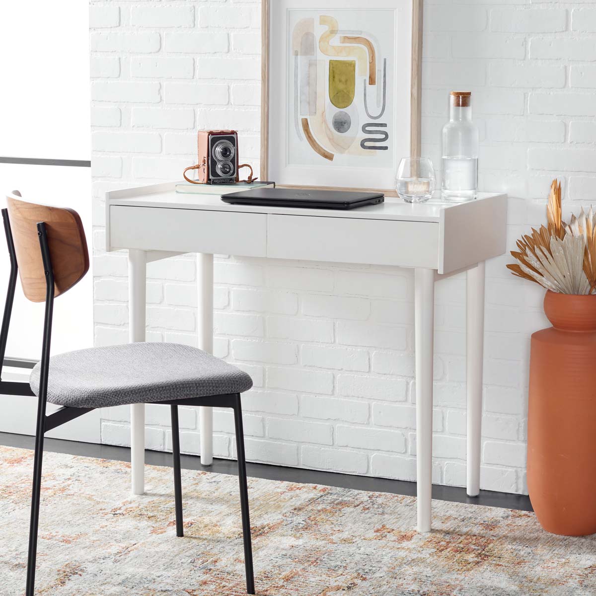 A study in form and function, this Henley Desk is in a class of its own. Mid-Century tapered legs in an antique white finish bring airy classic-contemporary charm to any home workspace, while two slim drawers are ideal for documents and other office supplies.