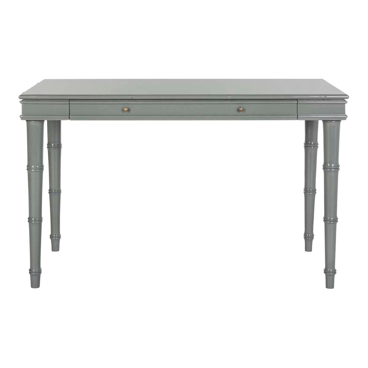 This modern coastal writing desk makes a splash in any office. Its neutral grey lacquered bamboo is paired with classic details that stand the test of time. Ample drawer space ensures instant organization.