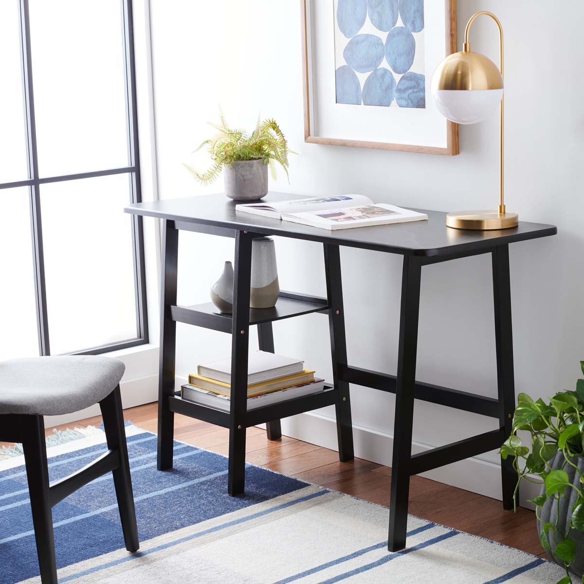 Poised and practical, this Sofara Desk is a designer staple in any home office. Sofara???s clean-lined frame features two open shelves ideal for filing, baskets, or any other workplace essentials, and its matte black finish ensures Sofara flawlessly complements any room???s d??cor.