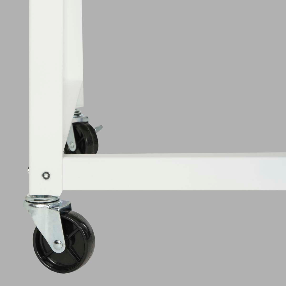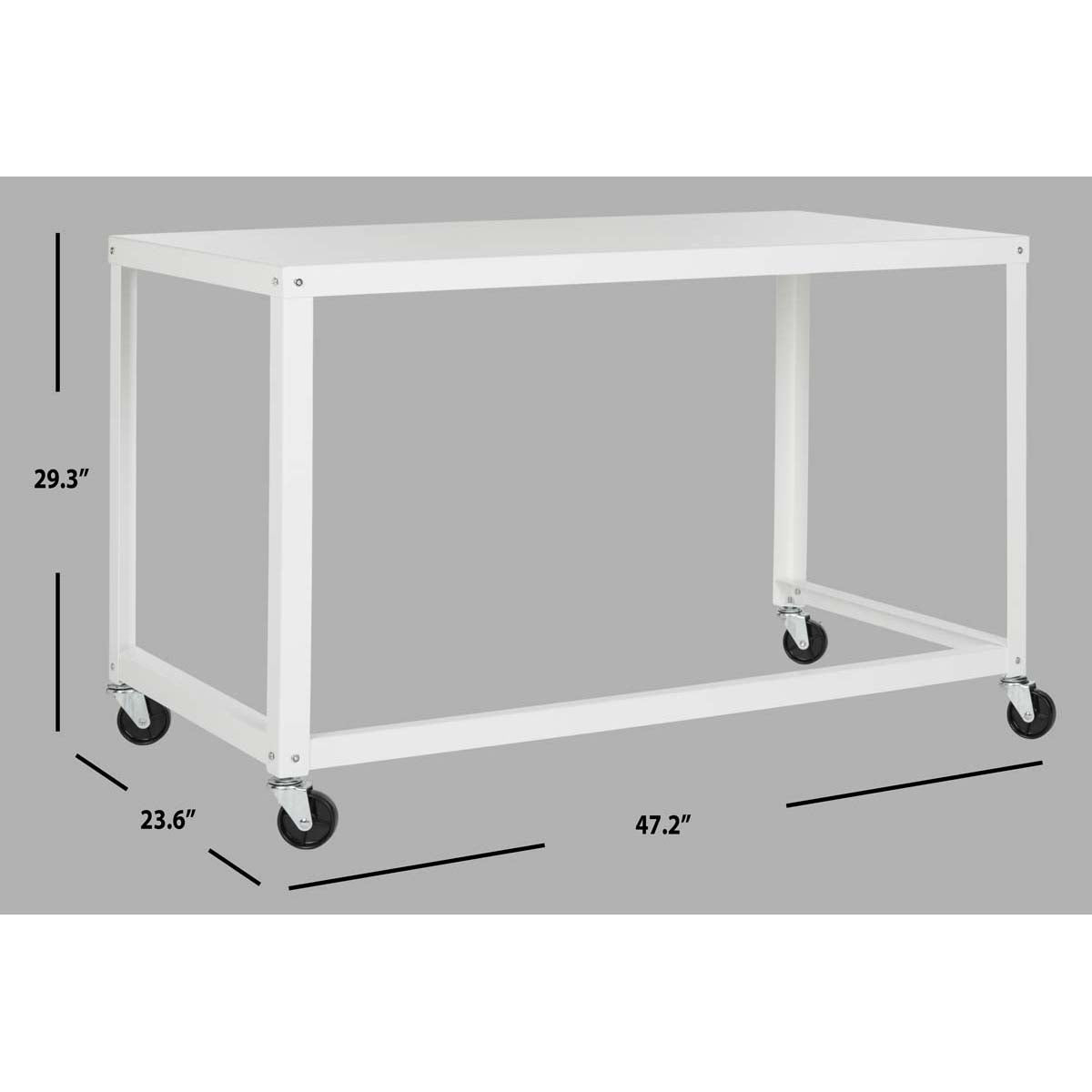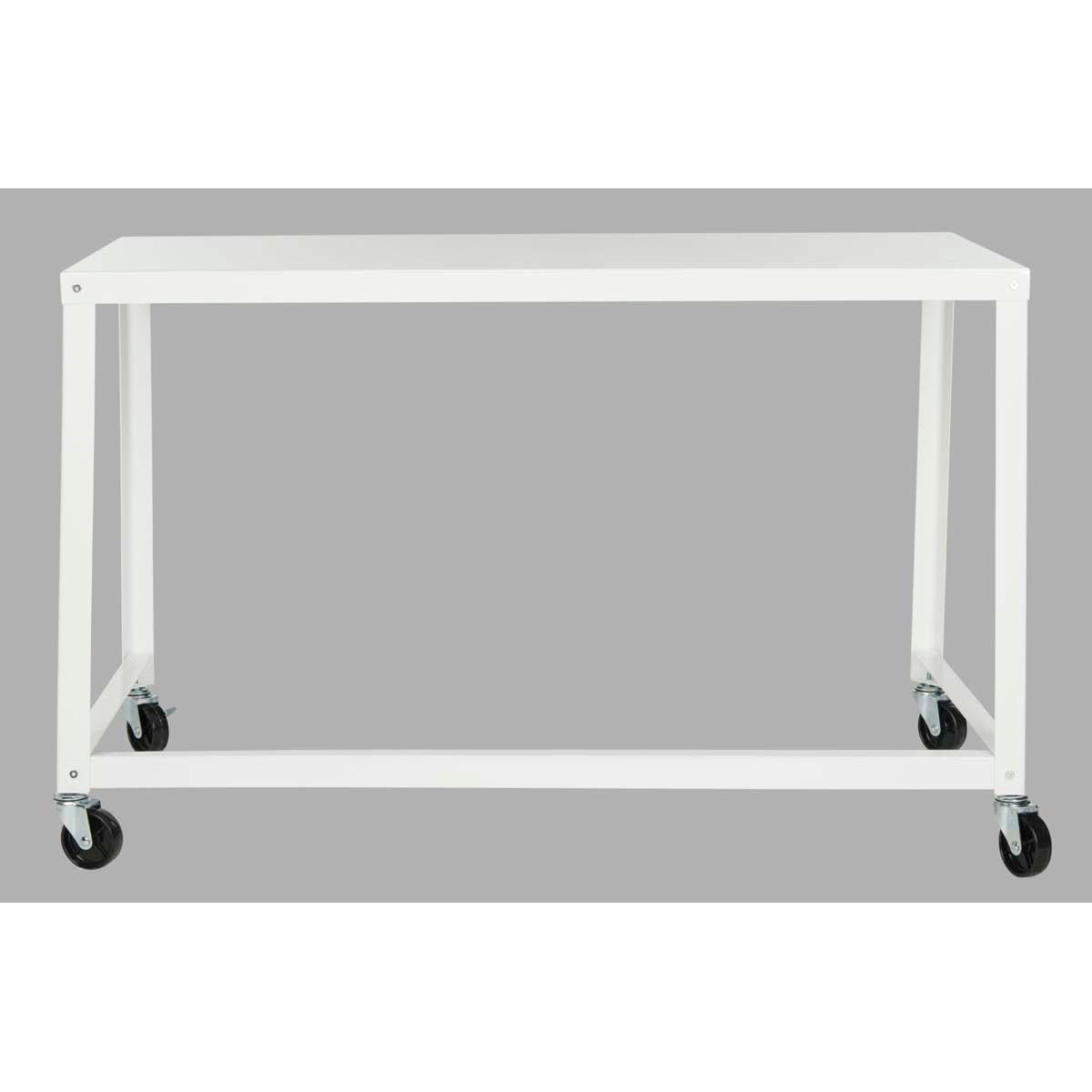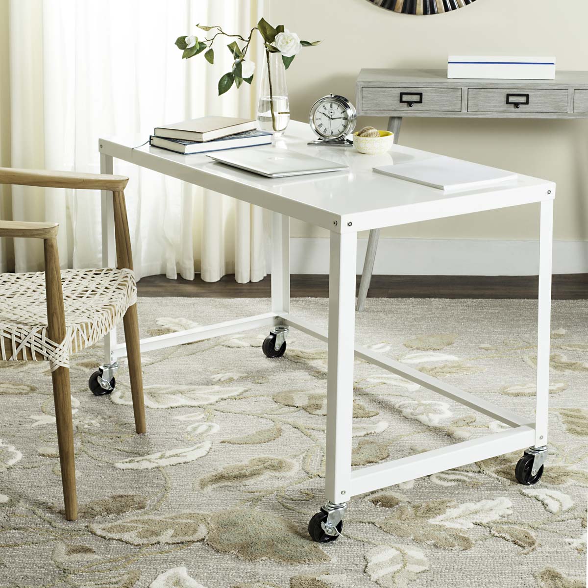 The industrial style Bentley desk, with its iron frame on casters, takes the iconic kitchen cart and updates it as a chic work table with a glossy white finish. Clean, simple lines keep the Bentley desk relevant and adaptable for the modern home office.