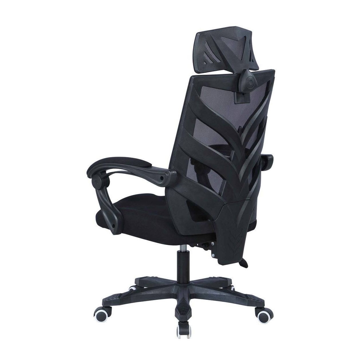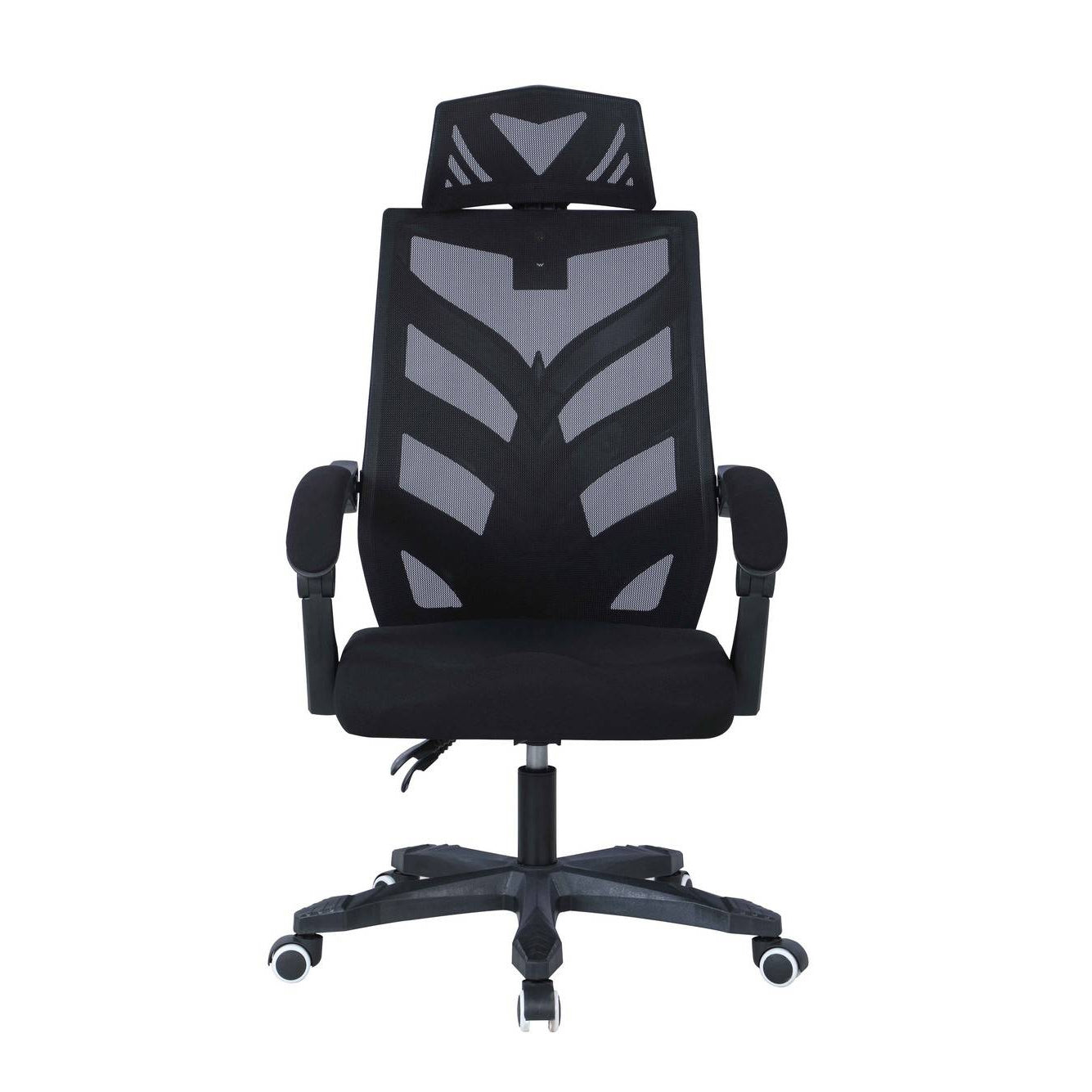 Enjoy the daily commute a bit better knowing you'll work in comfort with our contemporary office chair. This sleek, reclinable office chair features a headrest, a mesh back and seat, padded arms, swivel function, pneumatic lift for height adjustment, attached wheel casters, and a nylon base.