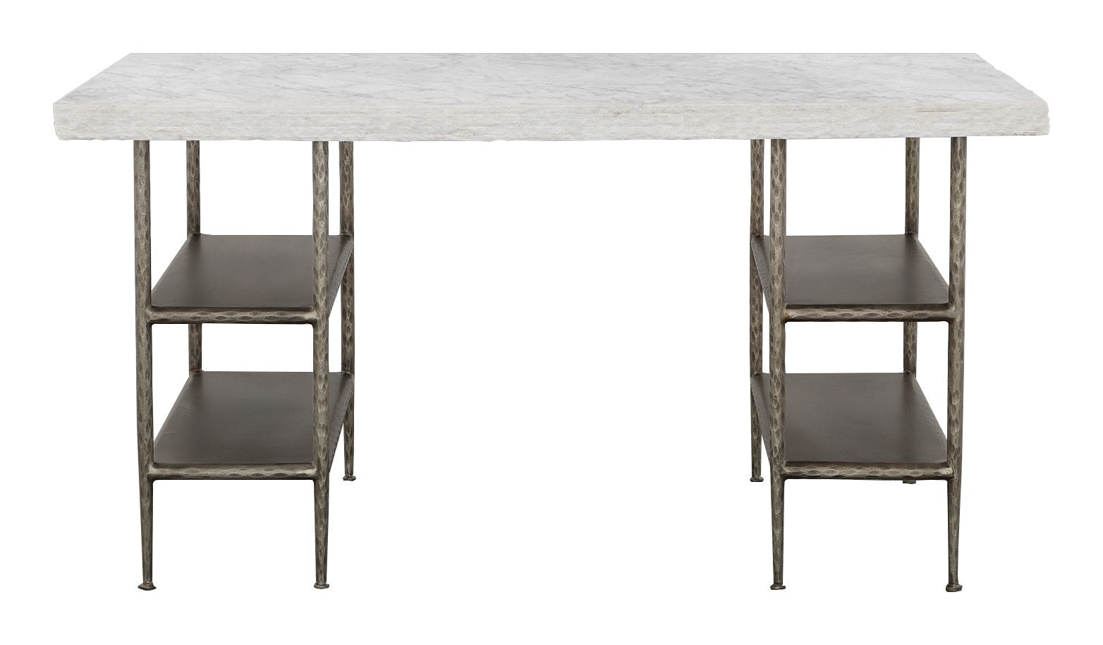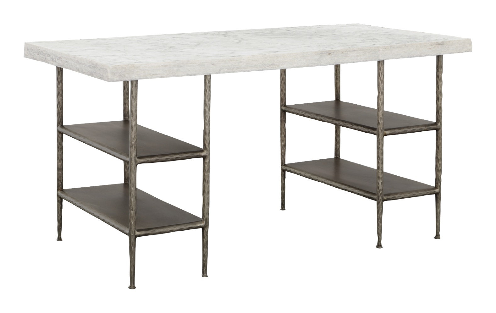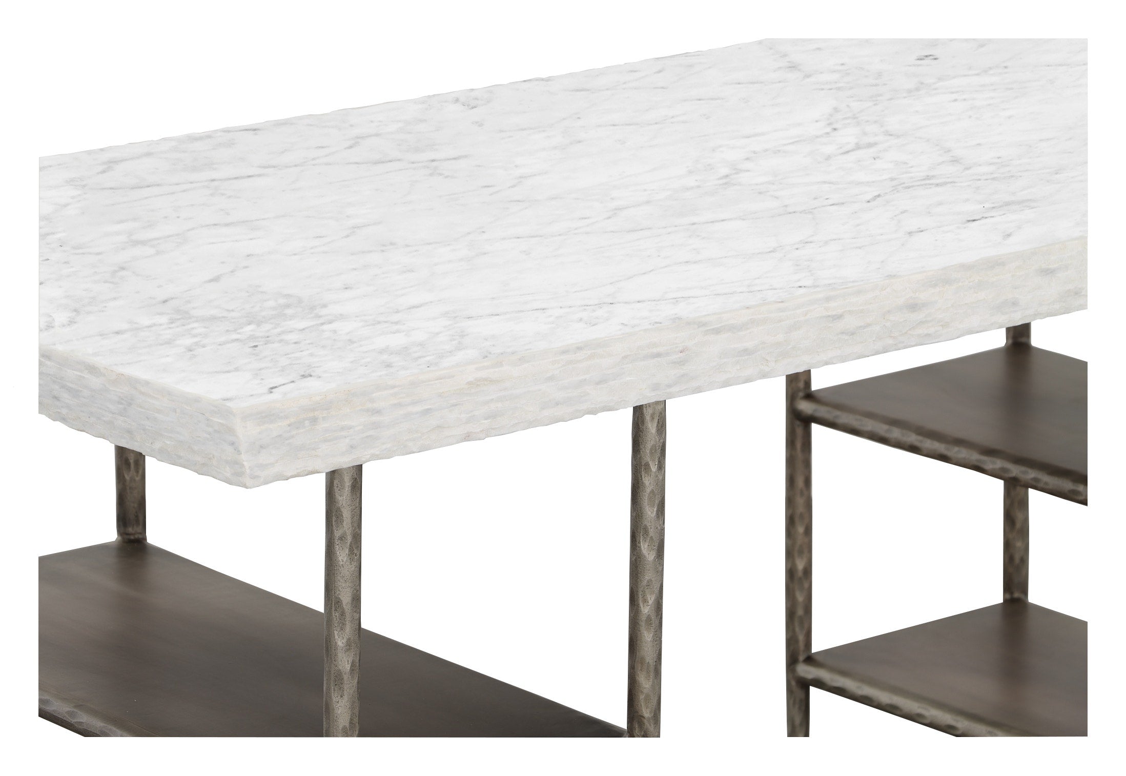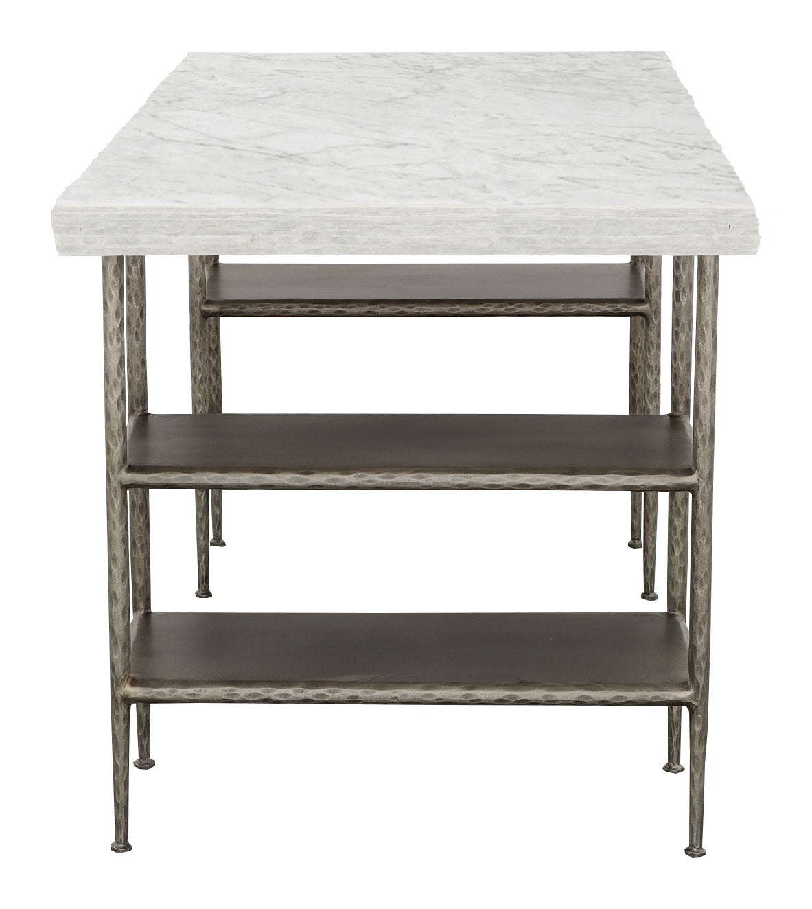 Palermo draws its origin from the extensive quarries in Italy. The hand hammered electroplated metal bases features a chiseled white marble with natural grey veining. This rough-hewn design is the standard for casual living.