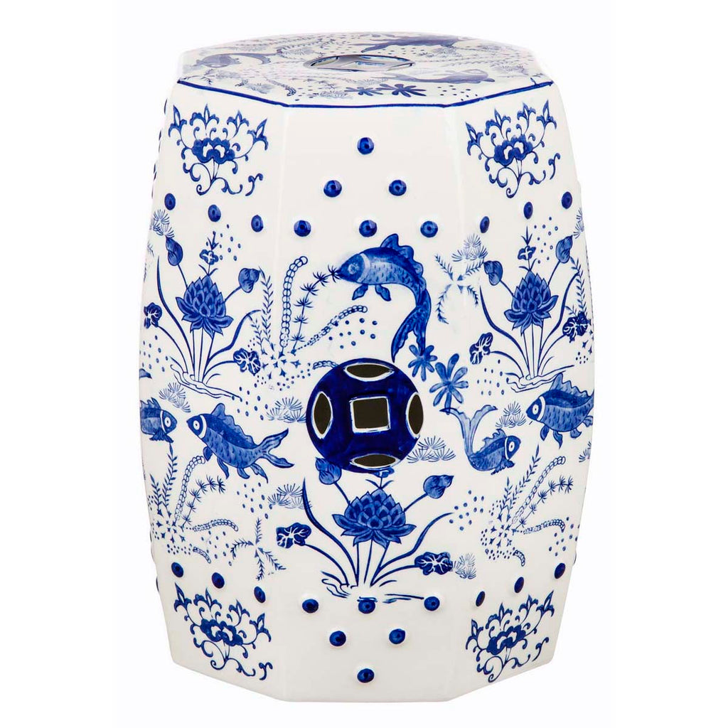 Bring a touch of tradition to your indoor or outdoor decor with this Cloud 9 Garden Stool. Although classically inspired, this stunning accent accessory is thoroughly contemporary in its white glazed ceramic, boasting a striking lapis blue Chinoiserie design of koi and lotus blossoms.