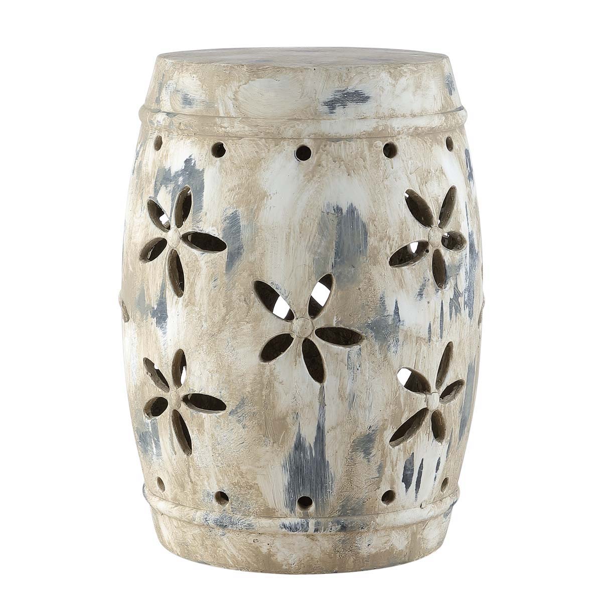 The softly mottled brushstrokes of this Ilia Garden Stool provide a perfect backdrop for intriguing floral and dot cut outs, perfect for lending a sense of artistic depth to any outdoor living space. Ilia is crafted of smooth concrete in antique and cream, creating a stylish decorative accent.