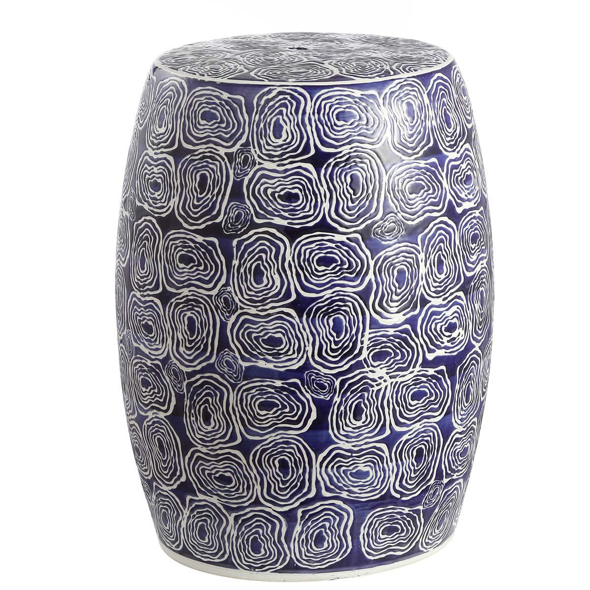 From top to bottom, this contemporary garden stool brings a modern spin on the timeless style of blue and white to any outdoor living space. Carefully crafted with the strength of ceramic, its powerful circular design creates a bold artistic focal point.