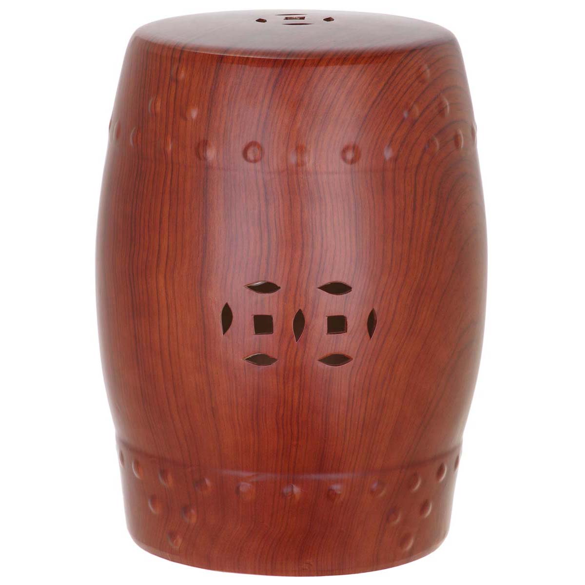 The ages old zen garden classic gets a sophisticated makeover in this indoor outdoor Ming Forest Garden Stool. A sleek silhouette is beautifully offset by Ming?? implied wood grain, crafted of red glazed ceramic and accented with pierced double coins and nail head details.