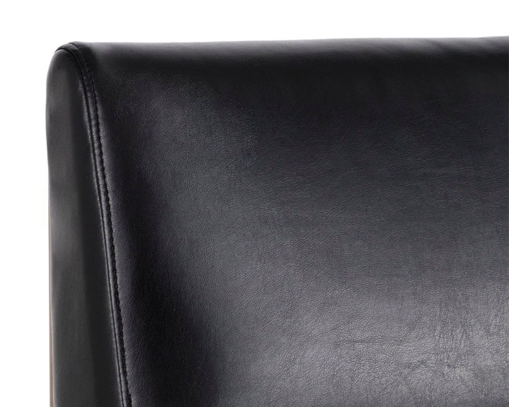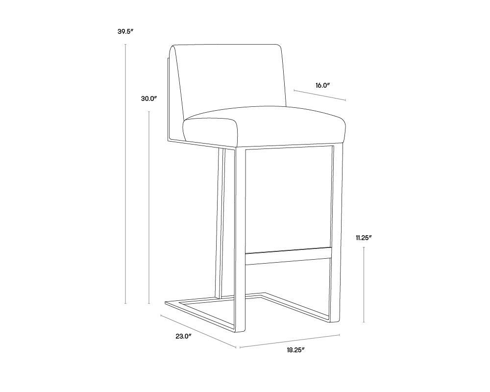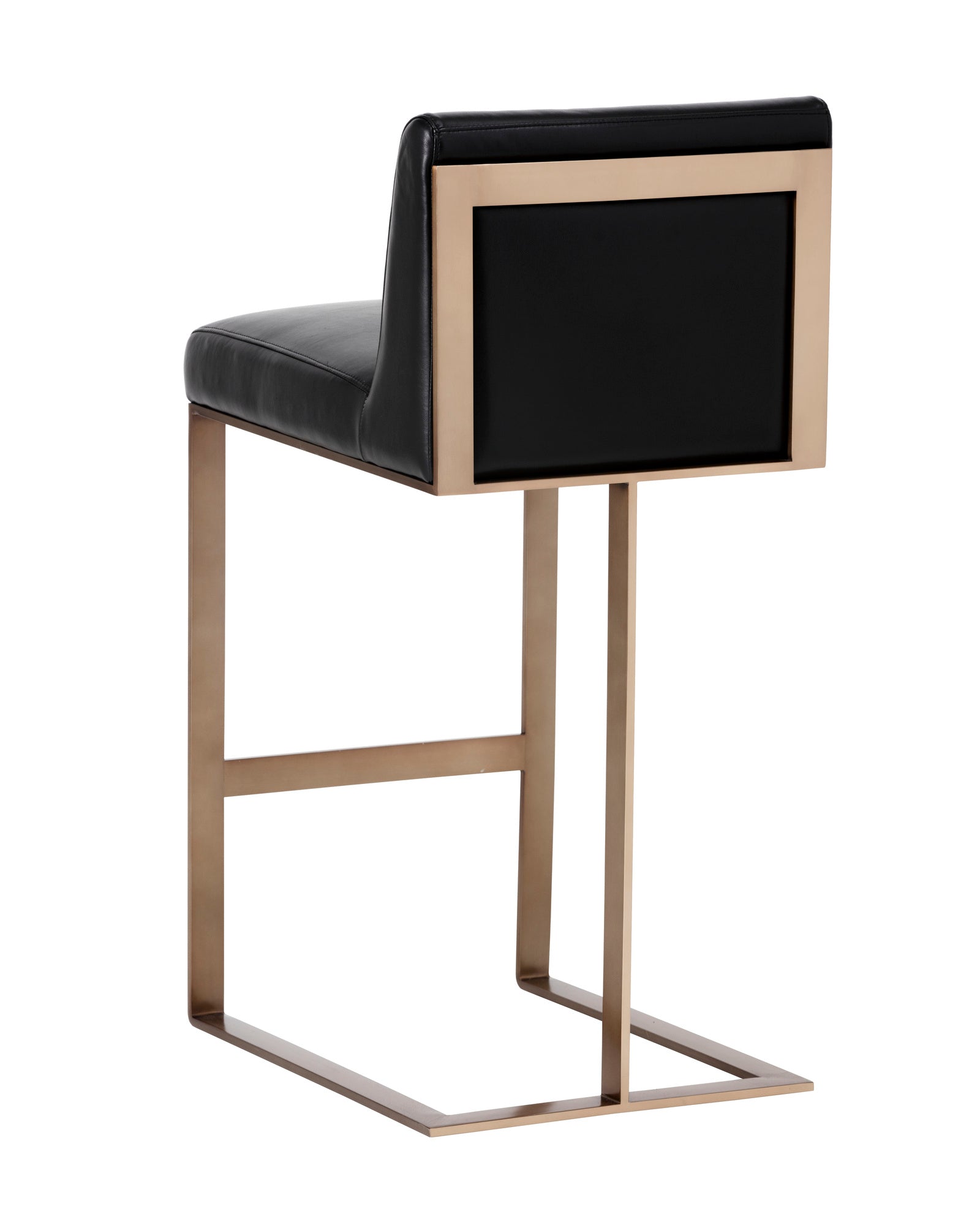 Stunning from all angles, this barstool features an exposed brushed antique brass steel frame with a footrest. A streamlined seat in cantina black bonded leather completes the look. Perfect for restaurants, bars and residential spaces. Suitable for various dining, kitchen and bar spaces of all sizes. Handle with Care: This design has been crafted with bonded leather. Bonded leather is a blend of reconstituted leather and synthetic materials crafted to reflect the natural characteristics of leather; as such, colour variations, markings, wrinkles, grooves and light scratches are acceptable and appreciated characteristics. No two pieces are alike. Visit our Product Care page for more information on how to ensure the lasting beauty of this piece.