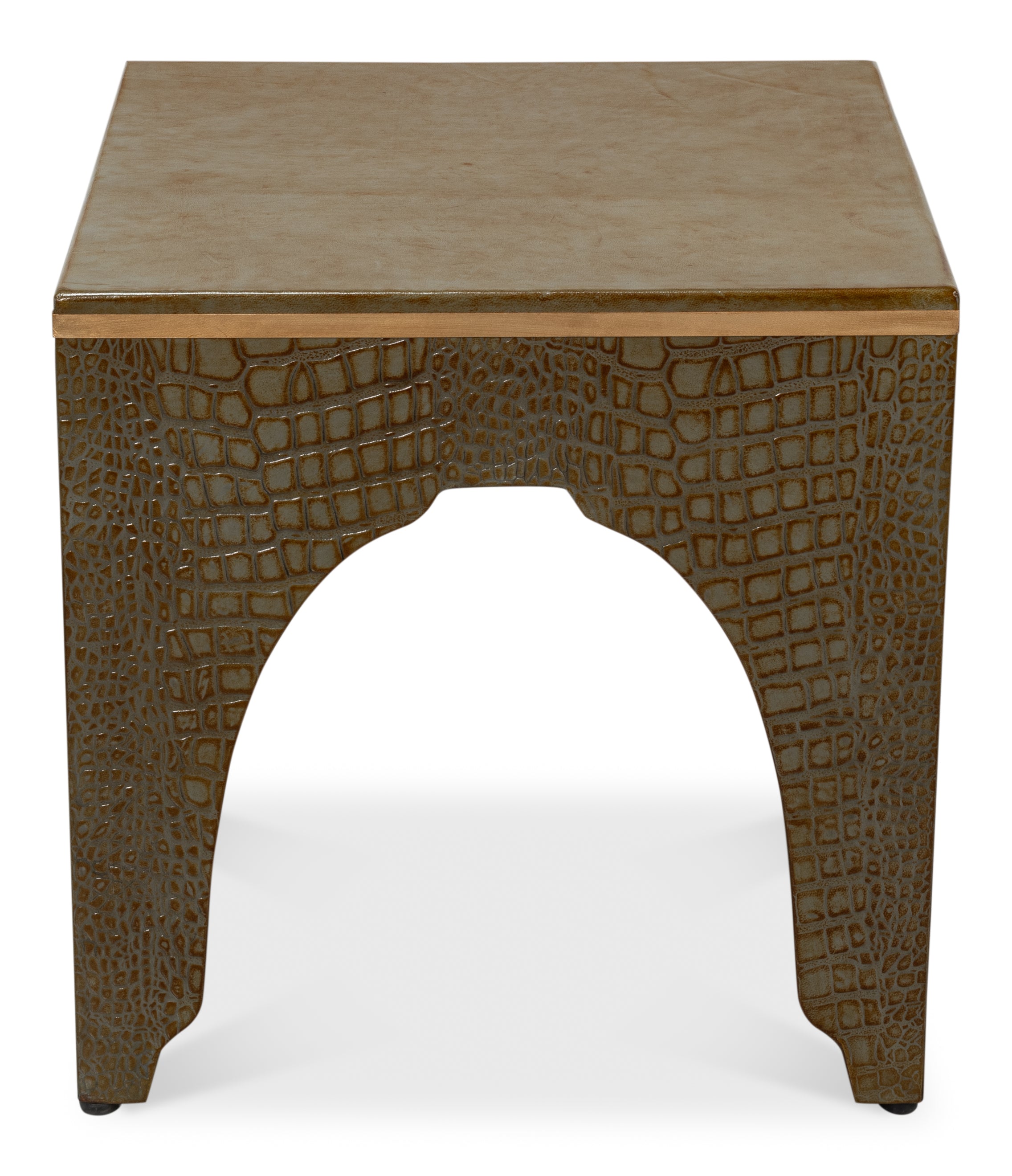 Elevate your space with the Croco Embossed Leather Stool in Antique Green. Luxuriously crafted with Antique Green Embossed Leather,this 18"w x 18"d x 19.5"h stool is a perfect blend of style and comfort. Relax in sophistication and enjoy the beauty of distinctive design.