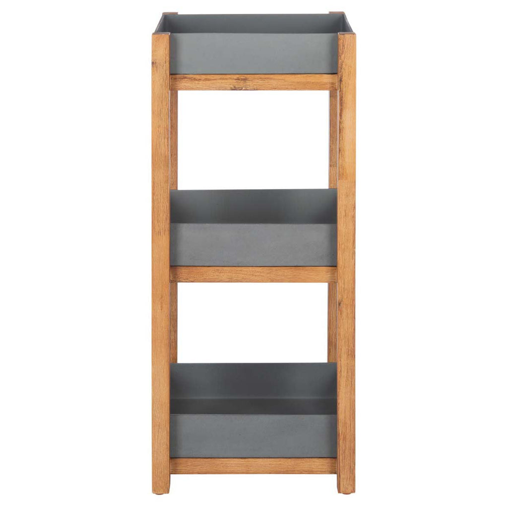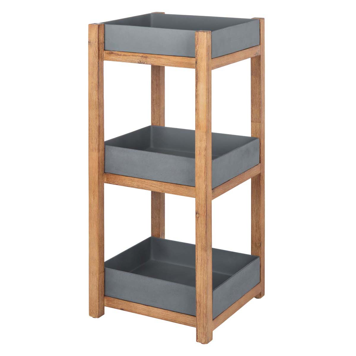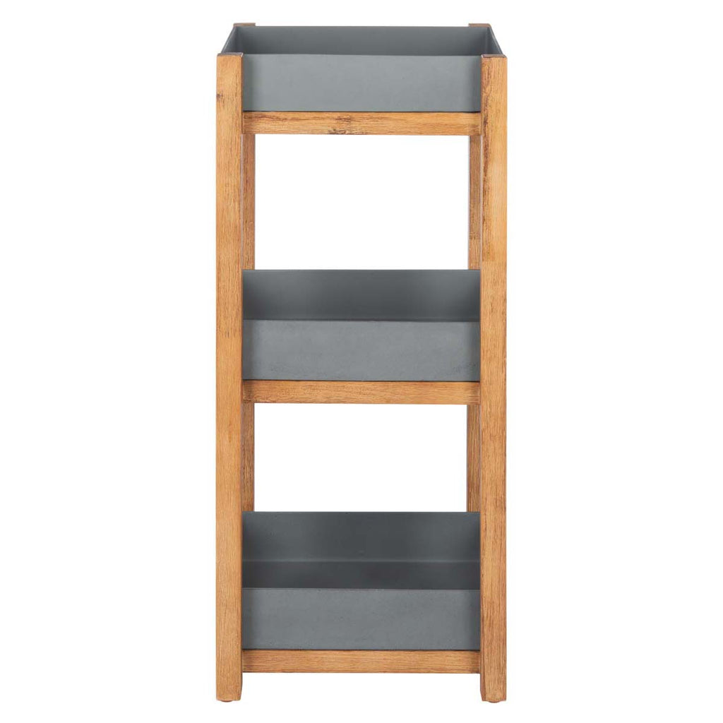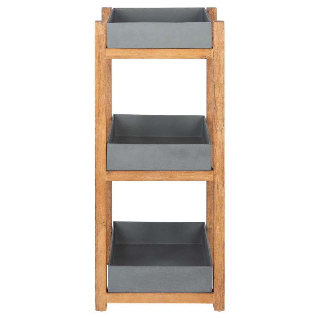 Perfect for outdoor supplies or poolside towels, this Artria Shelf masters form and function in its mixed media artistry. Dark grey sandstone shelves with raised sides lend an industrial look to its tropically styled natural acacia frame, making it ideal on the porch, patio, or in the garden.