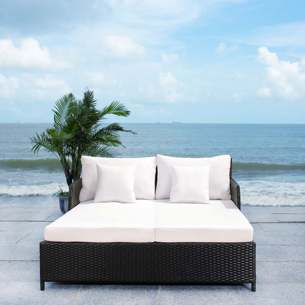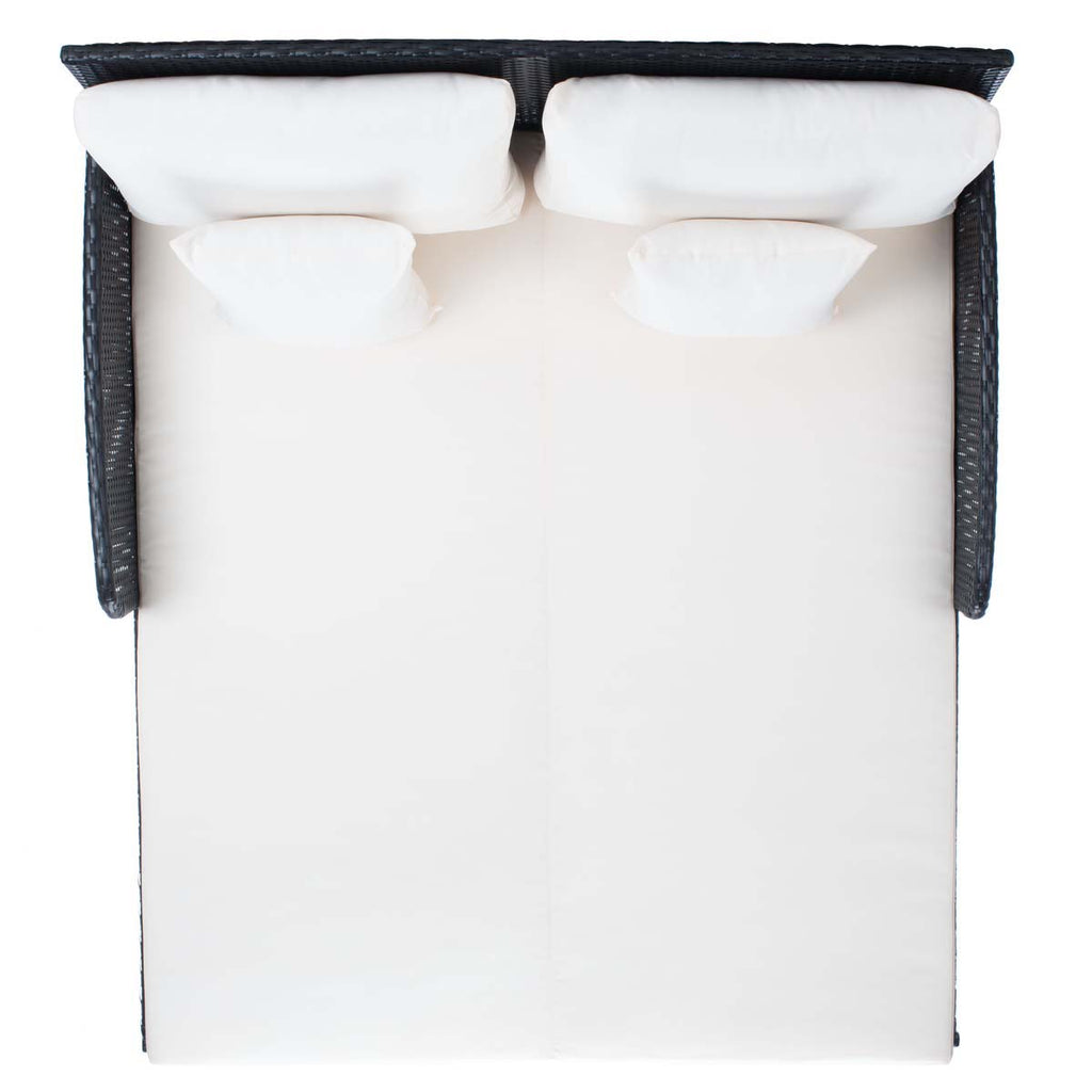 The luxury of an exclusive South Beach resort comes to outdoor d?cor when you lounge in this sophisticated Cadeo Daybed. Cadeo?? chic black frame and plush white pillows will be your favorite poolside destination when it?? time to soak up the sun.