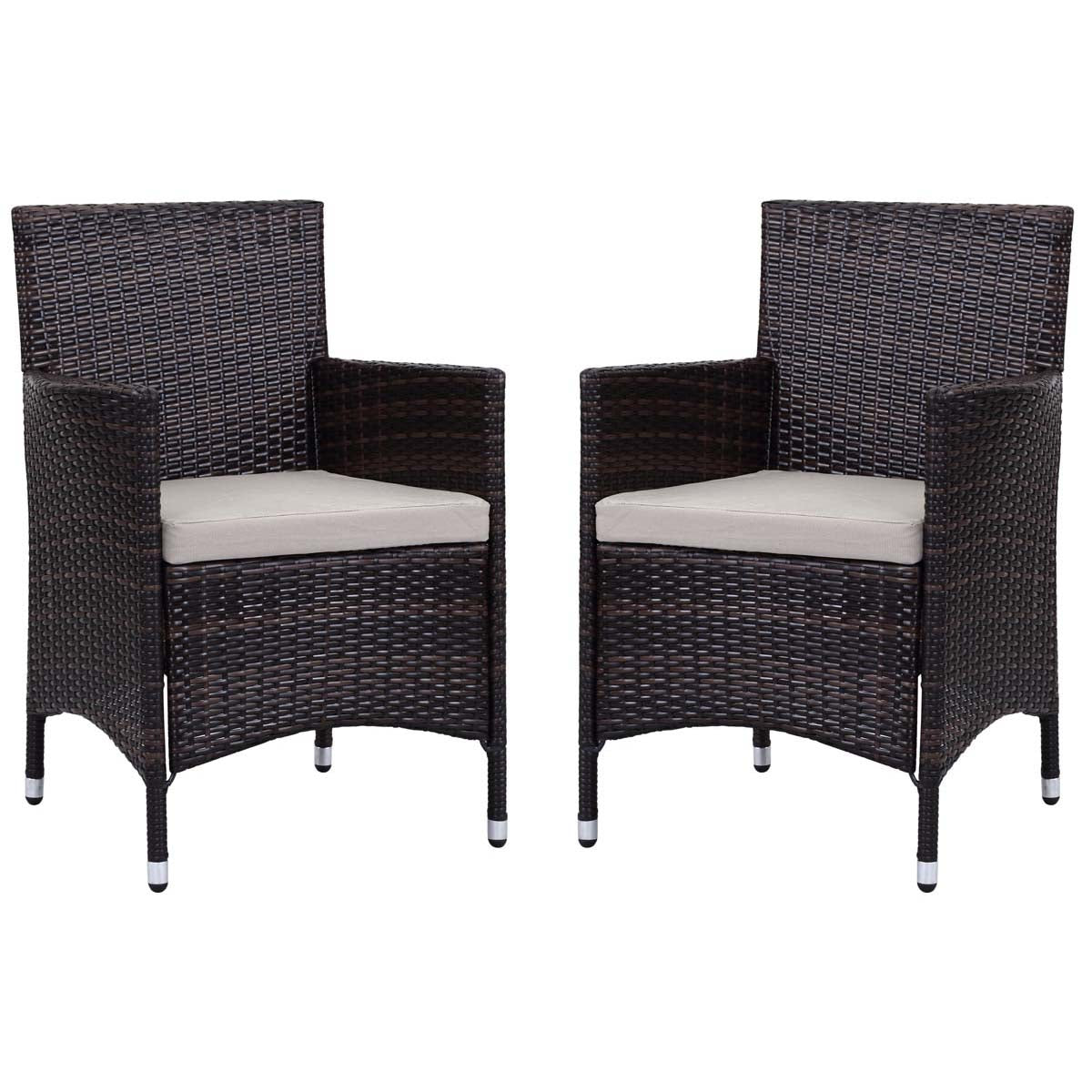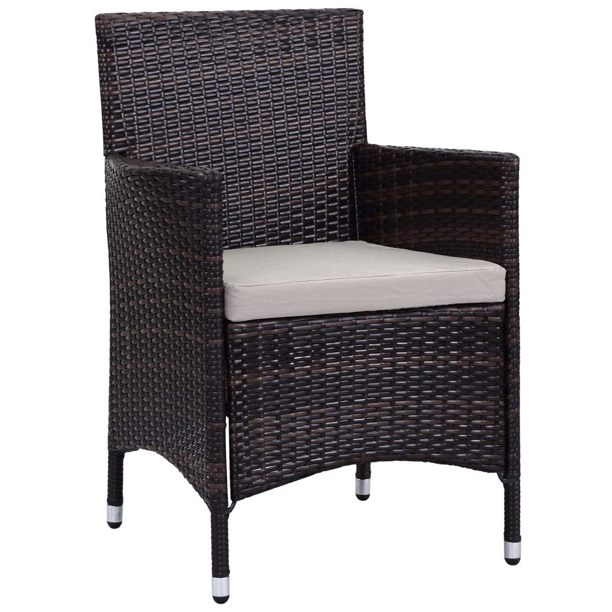 Chairs a la carte. This casual outdoor chair is equally at home in conversation groupings or at a dining table. Crafted of PE rattan in rich brown, it comes with an upholstered cushion in sand, and everything is made to stand up to the toughest weather.