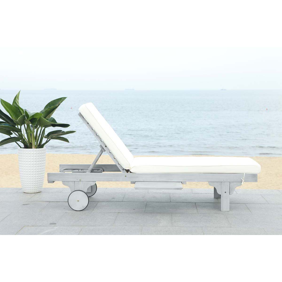 Safavieh Newport Chaise Lounge Chair With Side Table - Ash Grey/Beige
