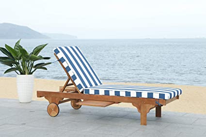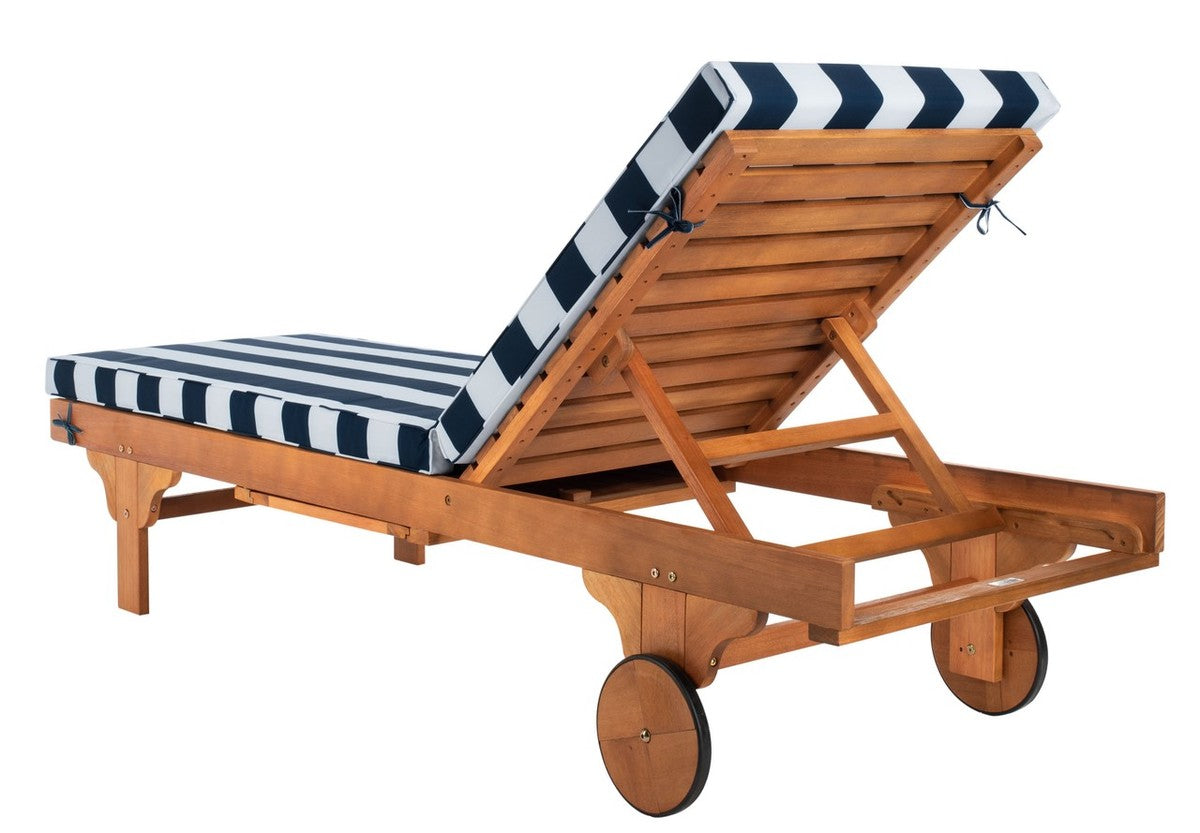 Safavieh Newport Chaise Lounge Chair With Side Table - Natural/Navy/White