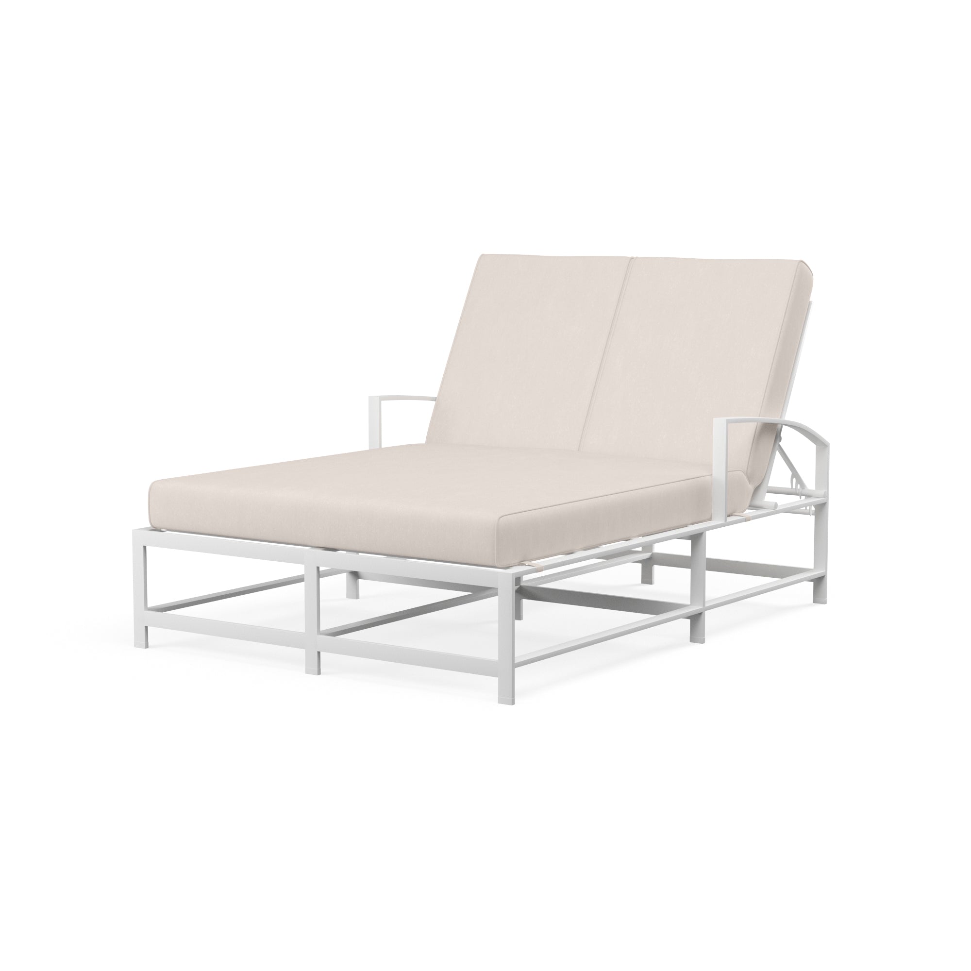 Sunset West's transitional Bristol Double Chaise is rendered in high quality, low-maintenance aluminum that will stand the test of time. This lounger Features a gently curved X back and seat scaled for comfort, with straight channel legs and subtly curved arms. Adjustable back offers 5 positions for customized lounging for two.