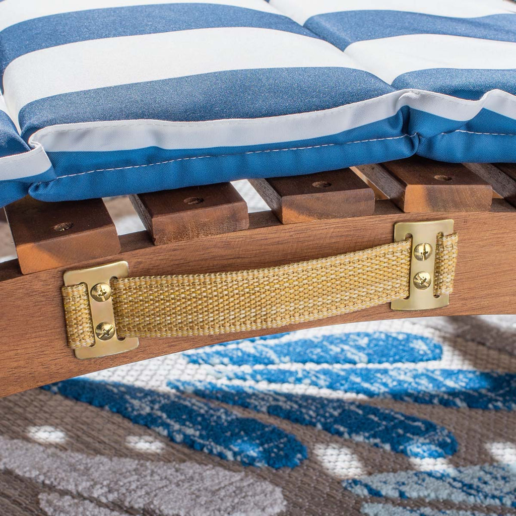 The nautical look assumes a chic new attitude with the elegant lines of this three piece outdoor lounge set. Weather resistant, UV treated cushions complement the lounge chairs and coordinating side table in sustainable acacia wood.