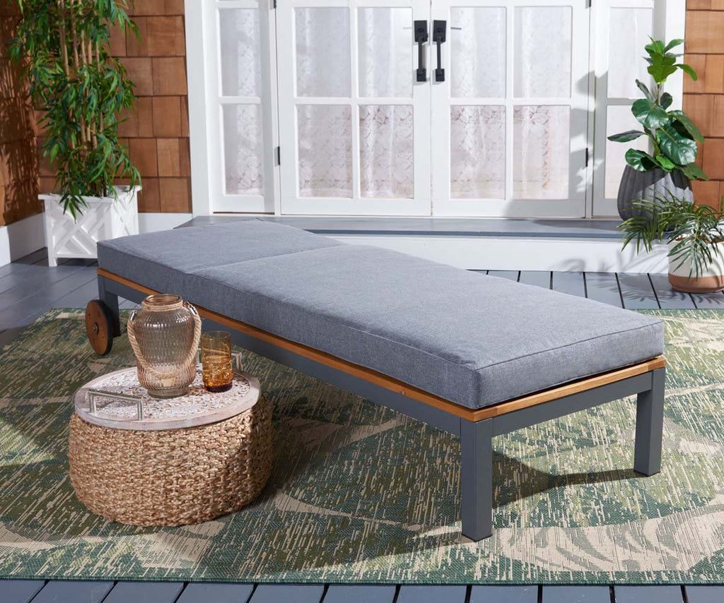 Resort poolside relaxation comes to your outdoor living space with this luxurious Jackman Lounge Chair. Jackman’s plush grey cushions and natural wood finish seamlessly accent any décor scheme, and built-in wheels allow for easy transport from the sun to the shade.