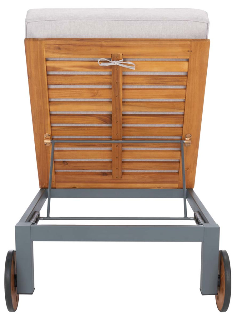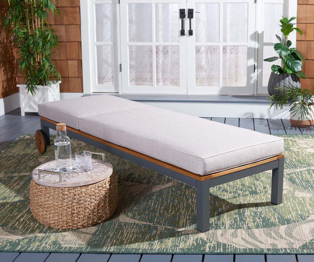 Resort poolside relaxation comes to your outdoor living space with this luxurious Jackman Lounge Chair. Jackman’s two-tone grey cushions and natural wood finish seamlessly accent any décor scheme, and built-in wheels allow for easy transport from the sun to the shade.