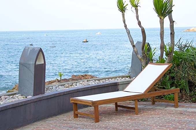 Sun worshippers rejoice: the Manteca lounge chair is designed for maximum comfort with sustainable acacia wood frame in natural contrasting beige Textilene all weather fabric. The seat back of this streamlined reclining chair is adjustable.