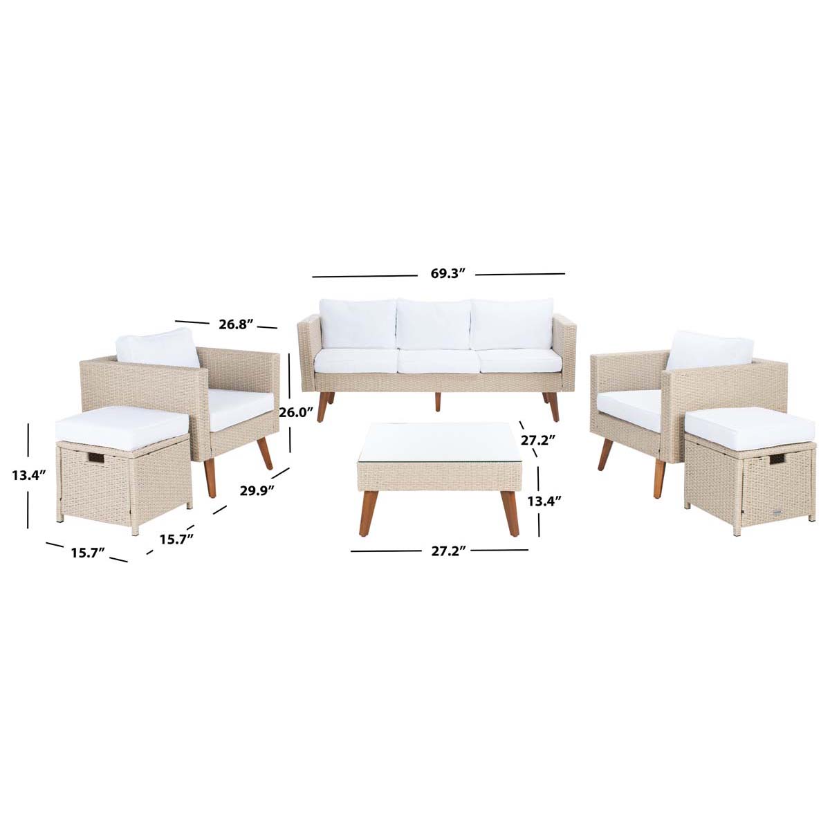 Safavieh Presla 6 Piece Living Set - Beige / White