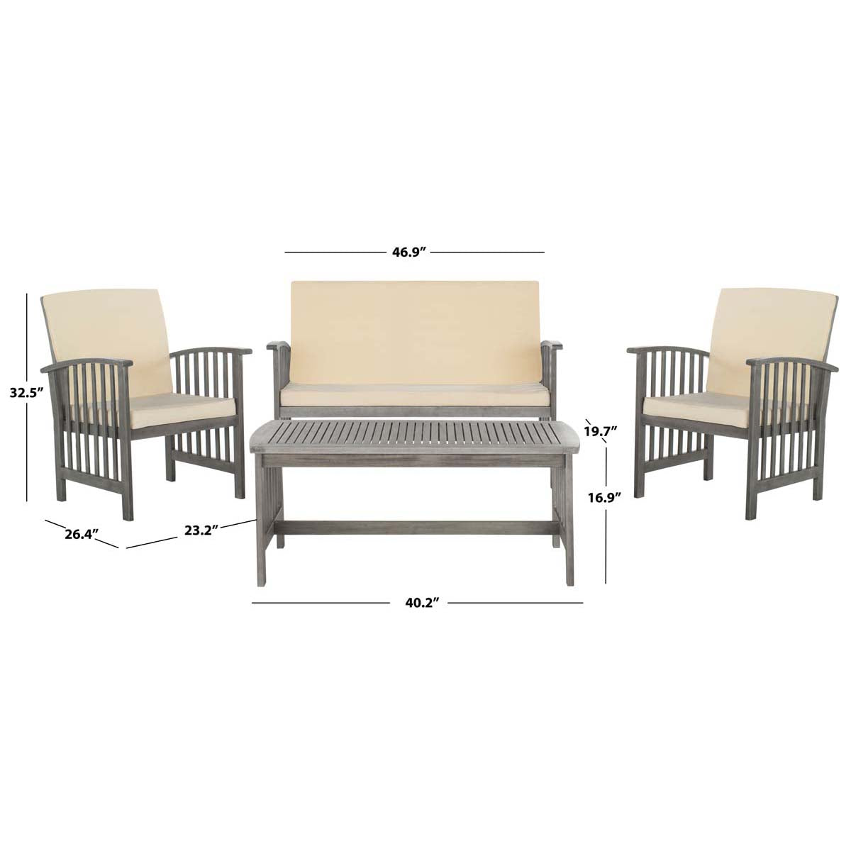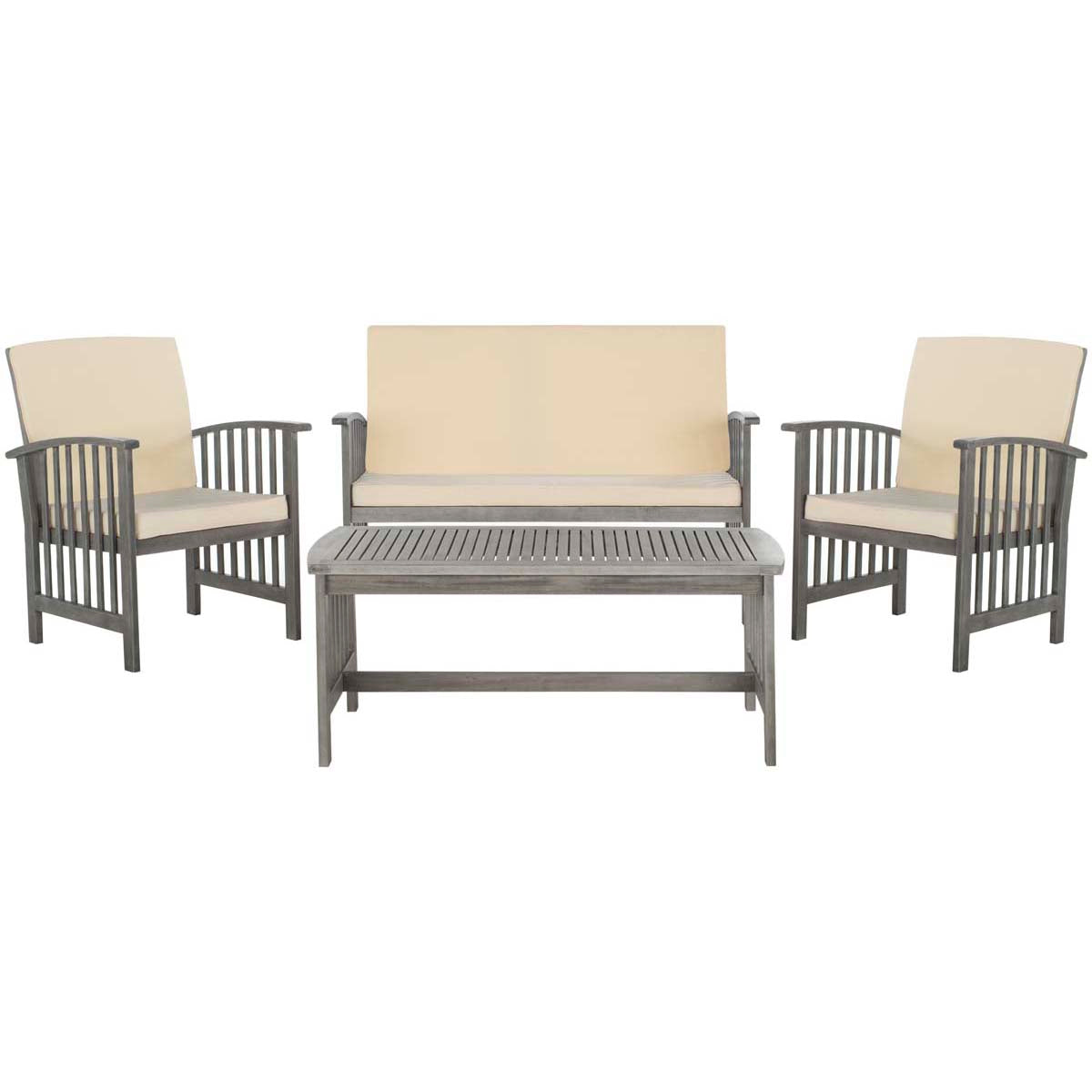 Safavieh Rocklin 4 Pc Outdoor Set - Grey Wash/Beige