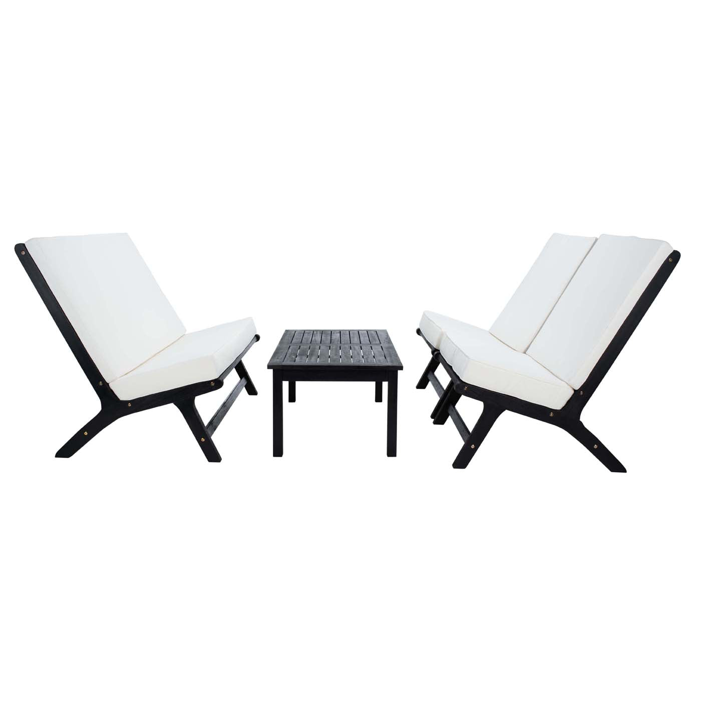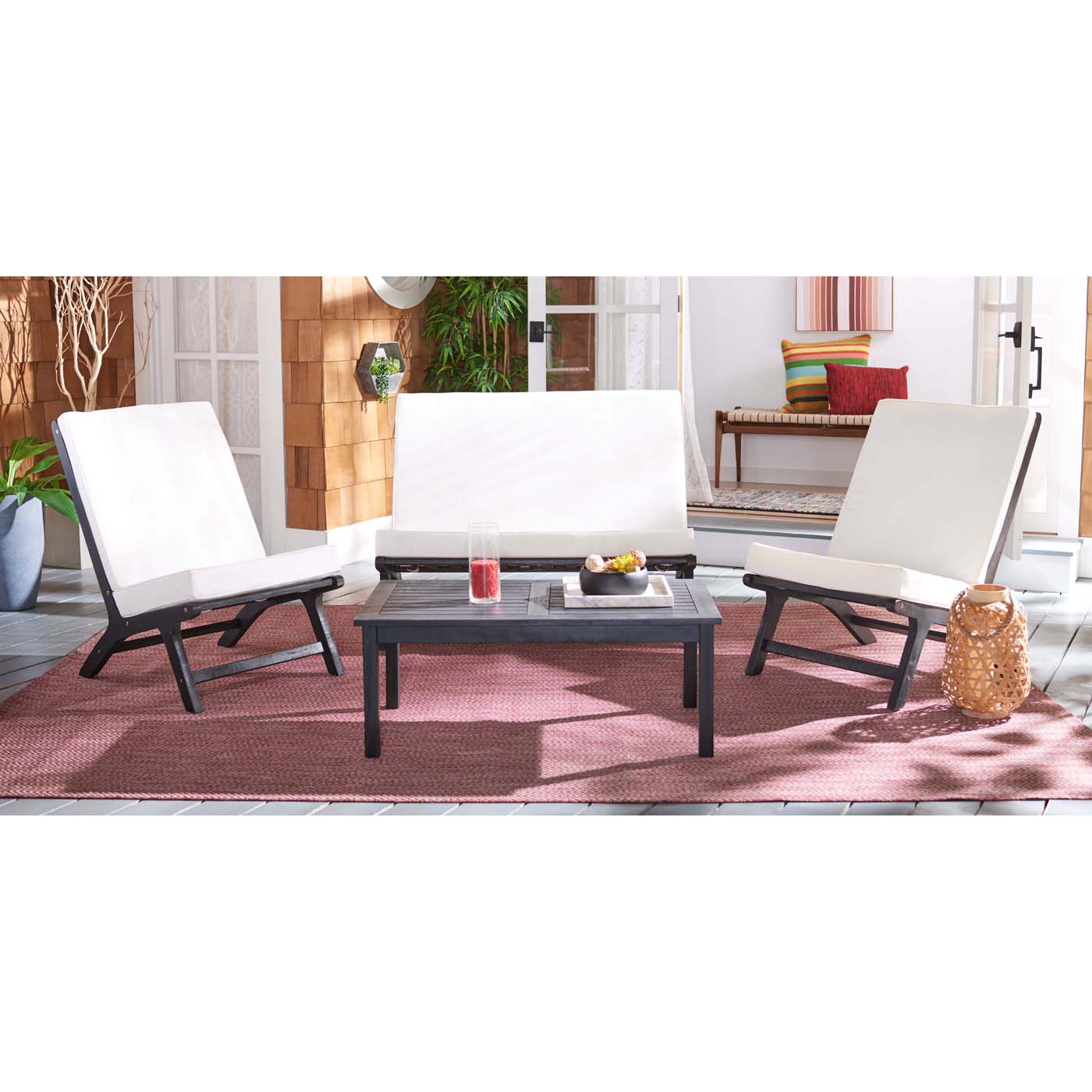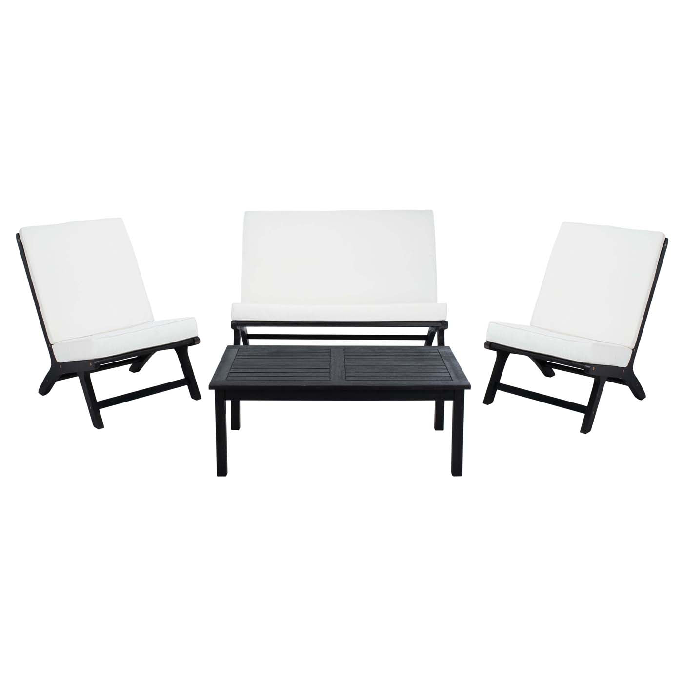 Safavieh Chaston 4 Pc Outdoor Living Set With Accent Pillows - Black Wood/Beige Cushion