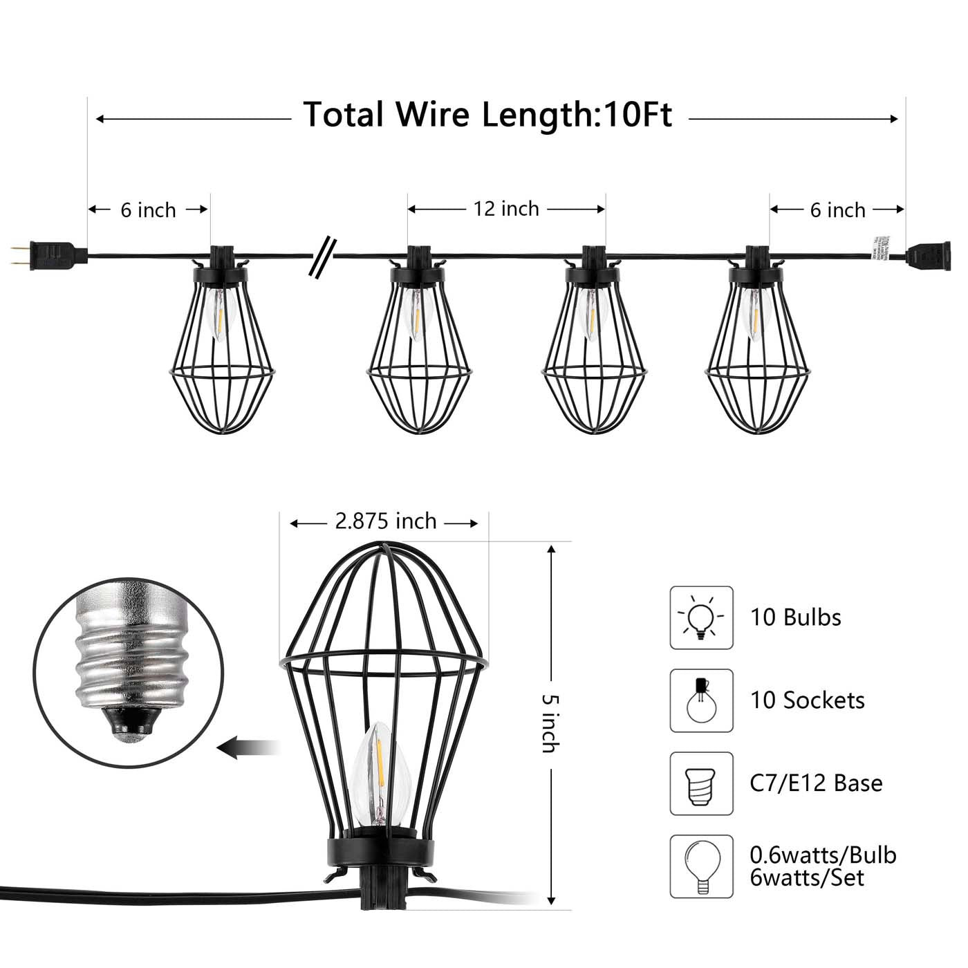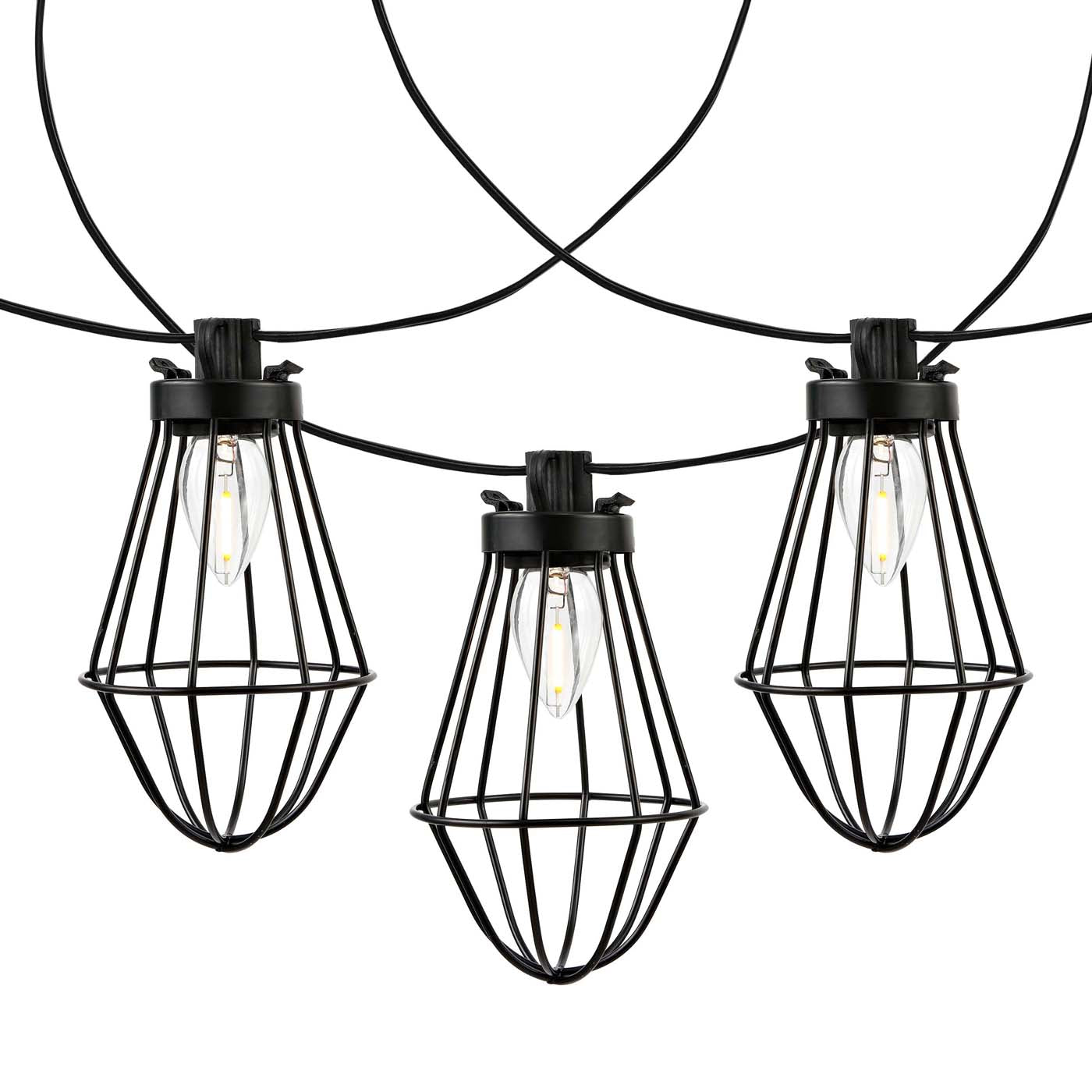 These eclectic Ellina LED Outdoor String Lights were designed for those who desire a unique, artistic touch to their outdoor decor. Ellina's ten industrial birdcage-style shades mimic the shape of Victorian streetlamps, giving new life to the classic design with a touch of sass.