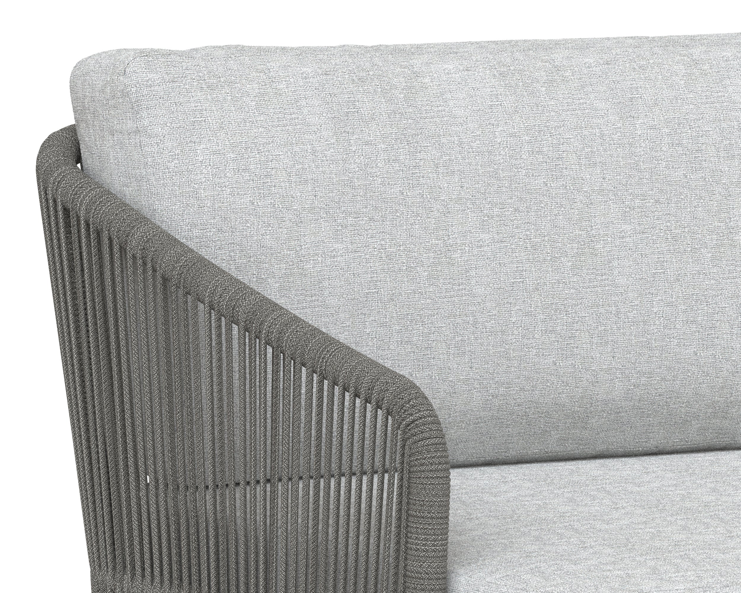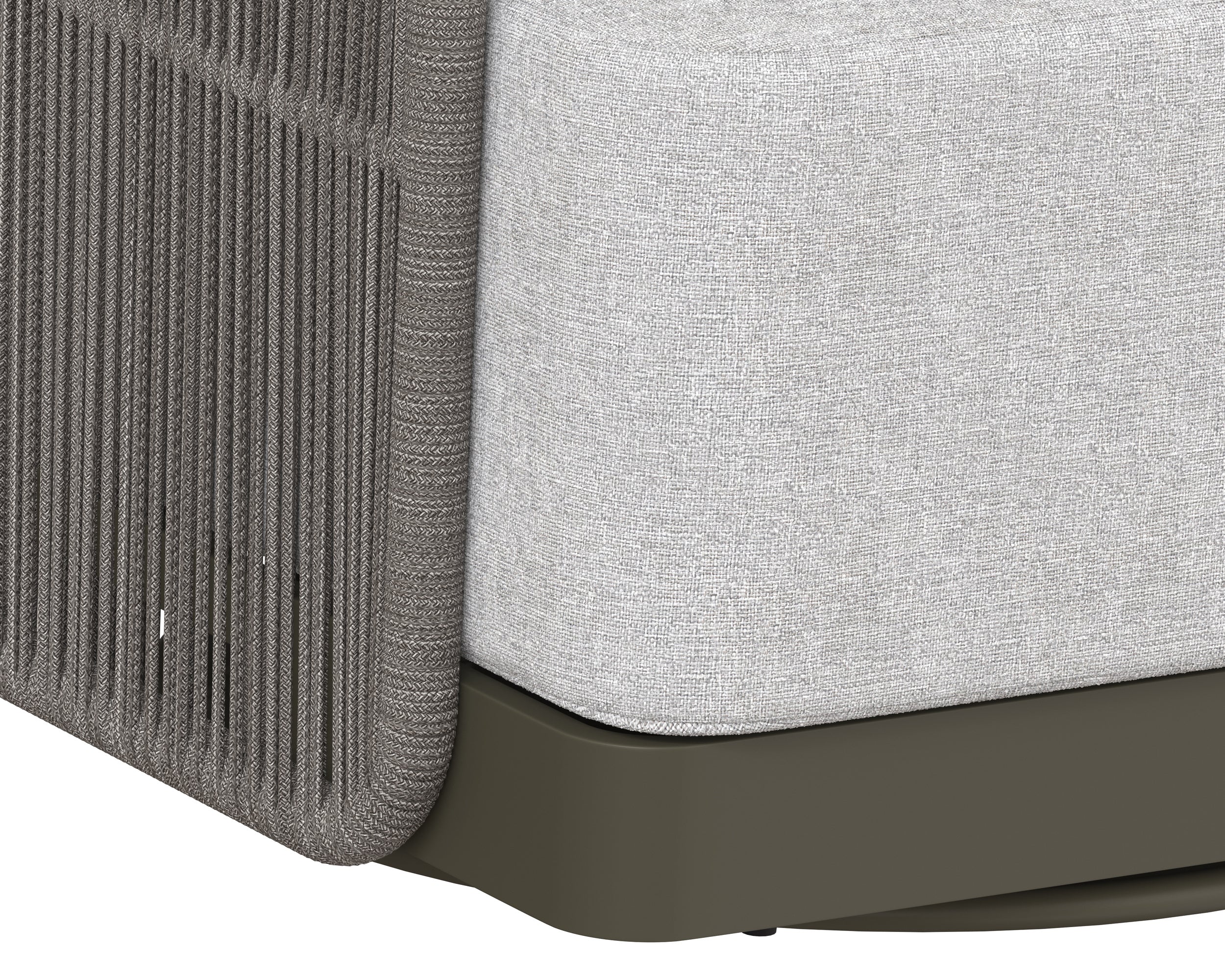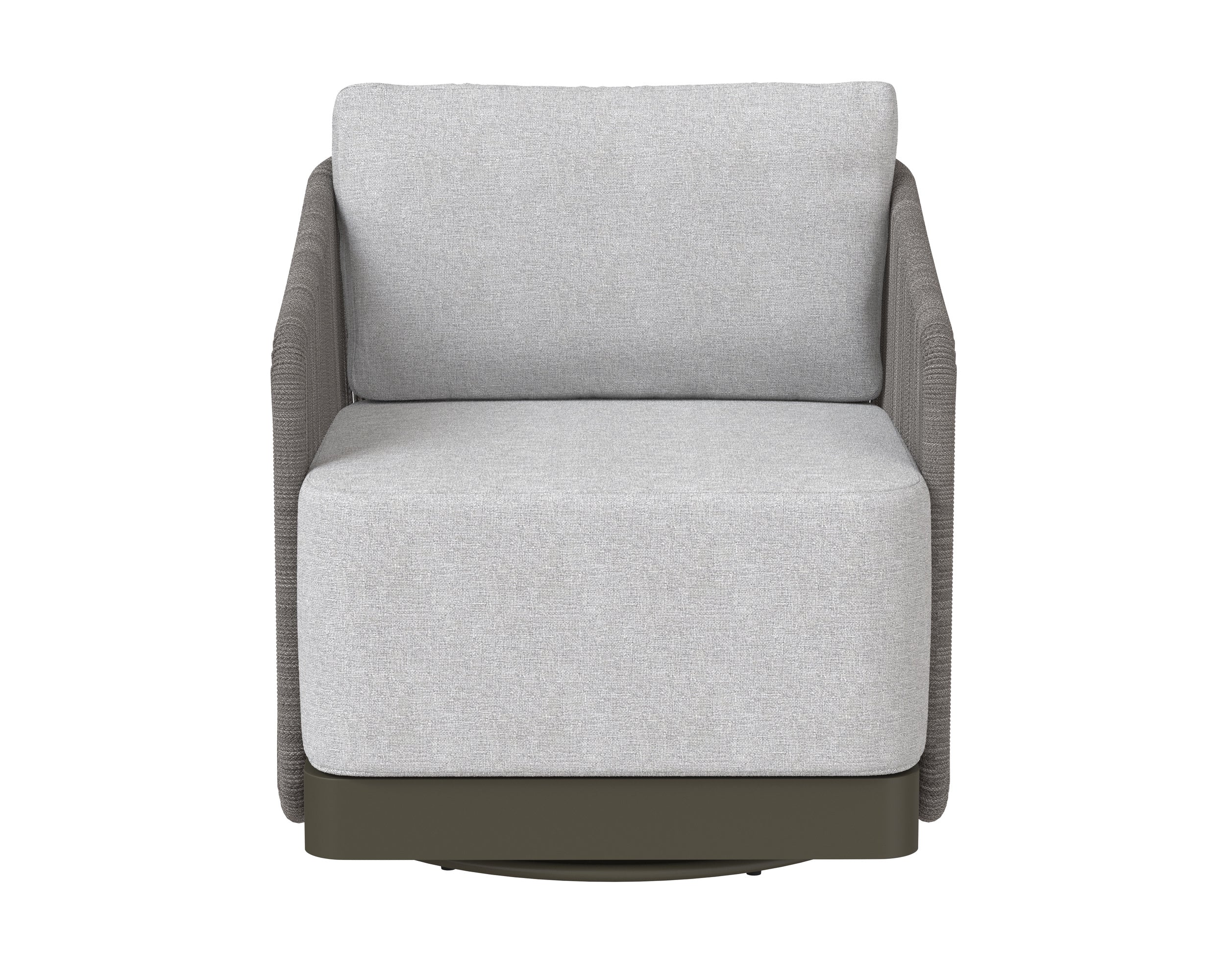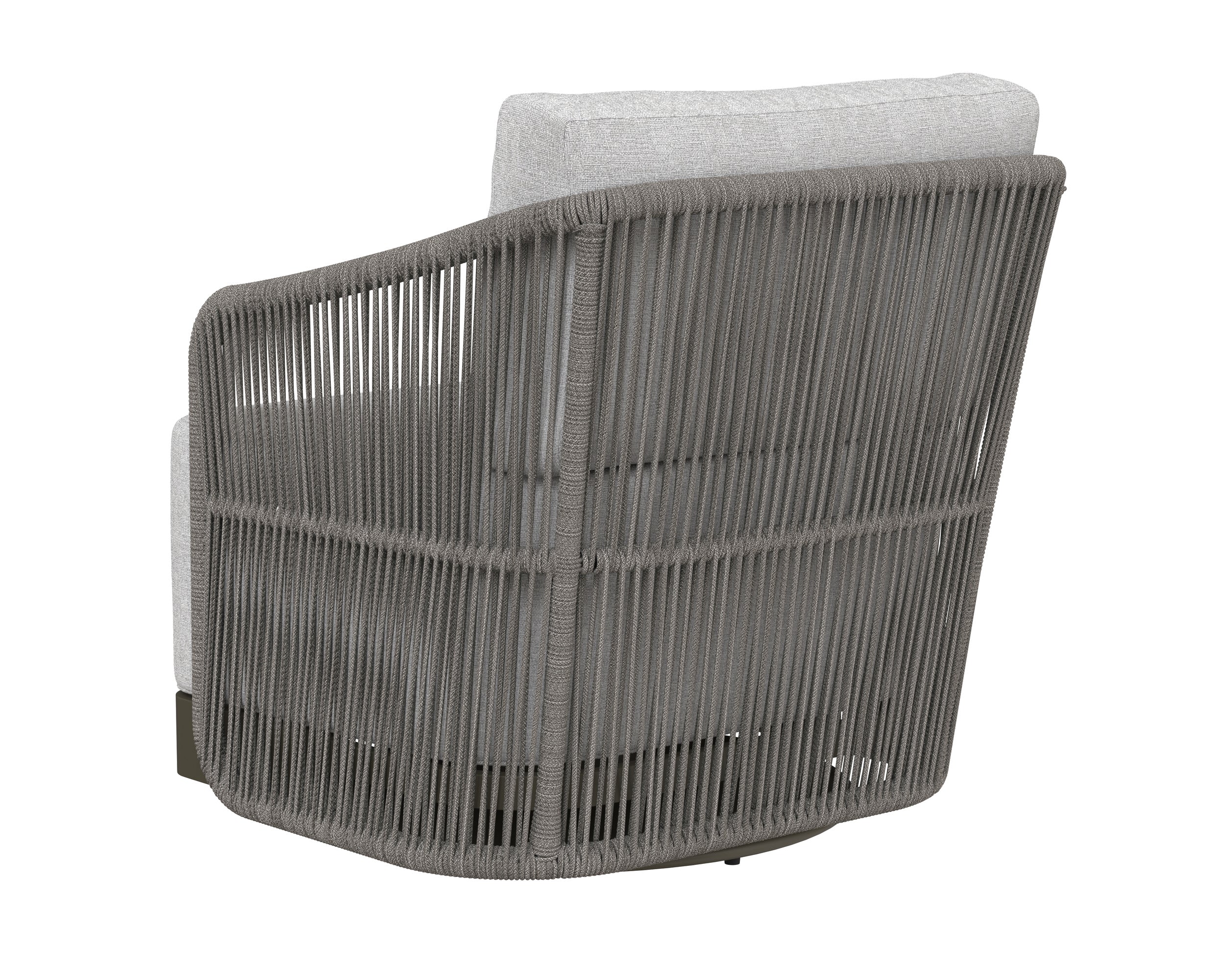 Introduce refined modern style outside with this impressive swivel armchair from the Outdoor by SUNPAN collection. Upholstered in gracebay light grey fabric with a powder-coated warm grey aluminum frame. Completed with grey rope weaving on the seat exterior.