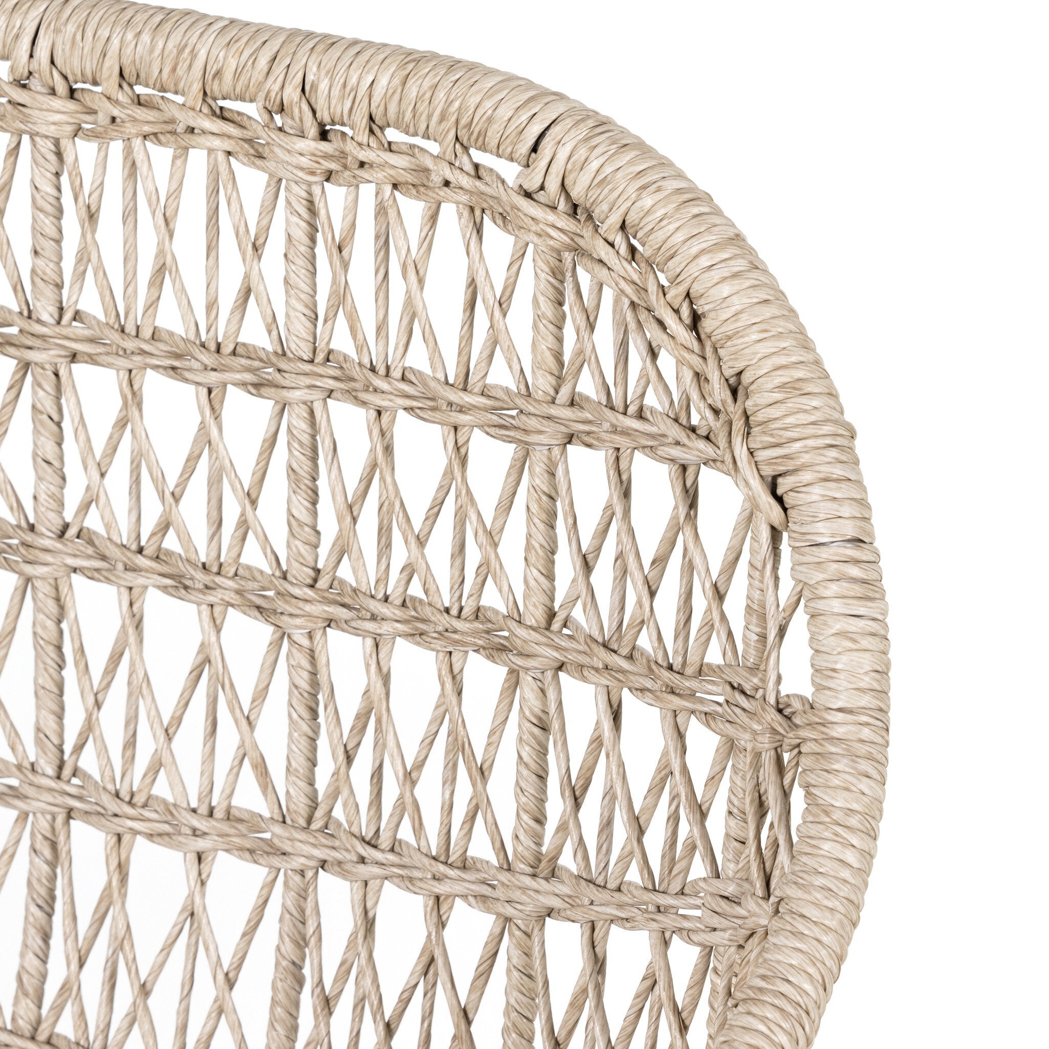 Clean, contemporary shaping and an updated weave transform all-weather wicker into something modern. This high-texture bar stool is supported by a contrasting bronzed iron base, with a white seat cushion for comfort. Cover or store indoors during inclement weather and when not in use.