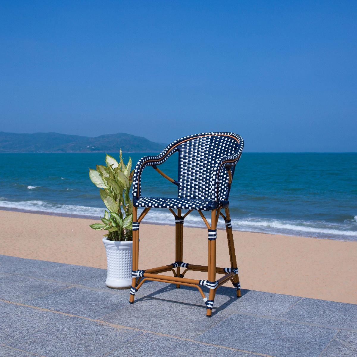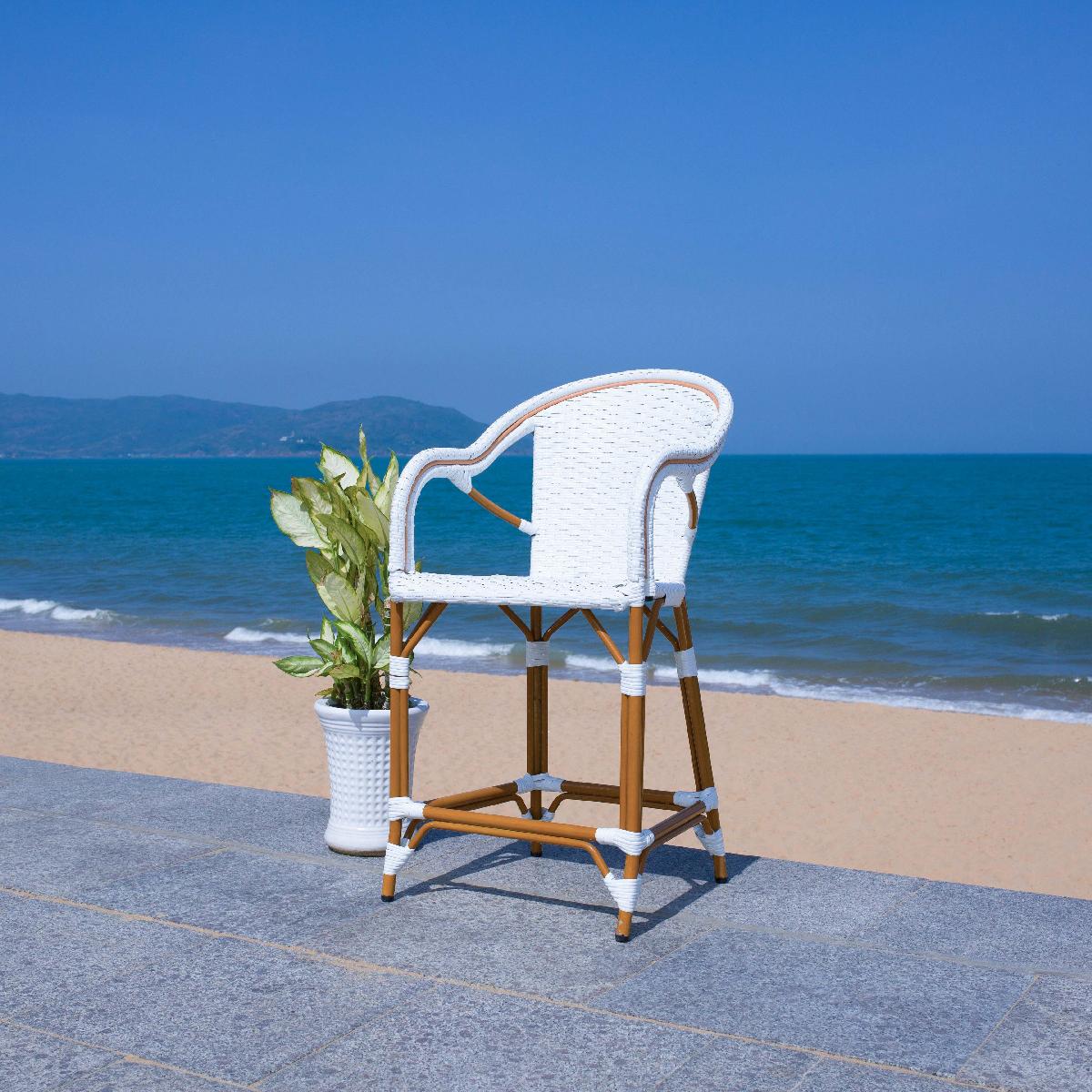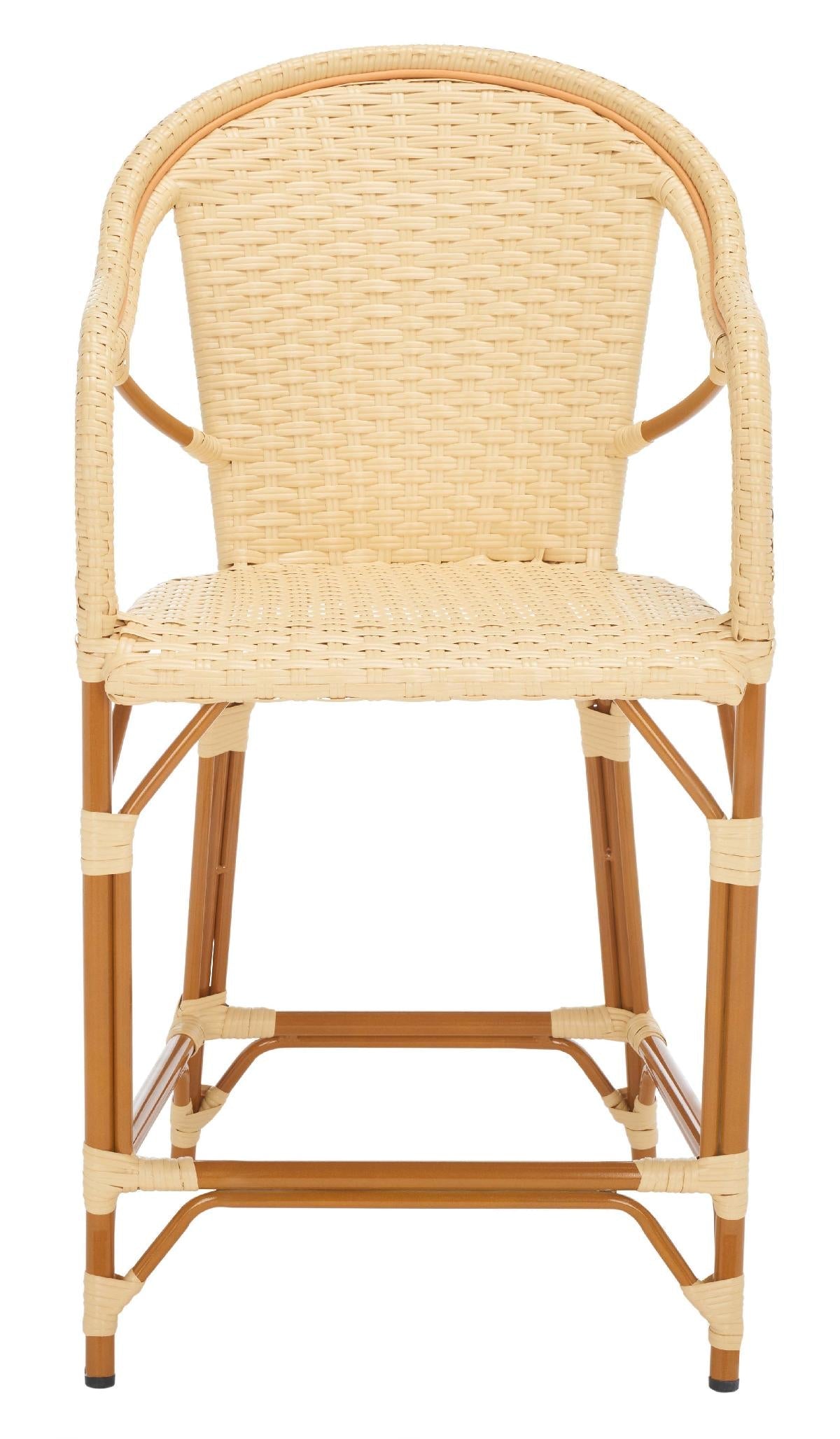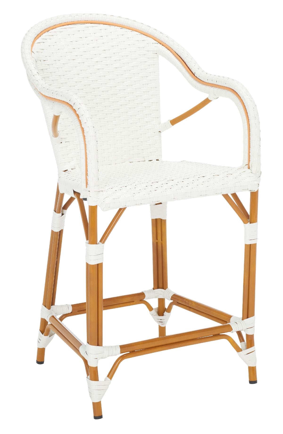 Bring breezy style to your al fresco dining with our California Counter Stool. it updates the time-honored French bistro chair with a gorgeous color palette. its woven contours and sheltering arms offer easy comfort. Featuring fuax wicker elegantly wrapped around an aluminum frame, our armchair captures textural beauty that can withstand the effect of sun, rain, and heat. easy to maintain and weather-friendly, our counter stool brings a dose of style and comfort to any high dining area in your patio or terrace.