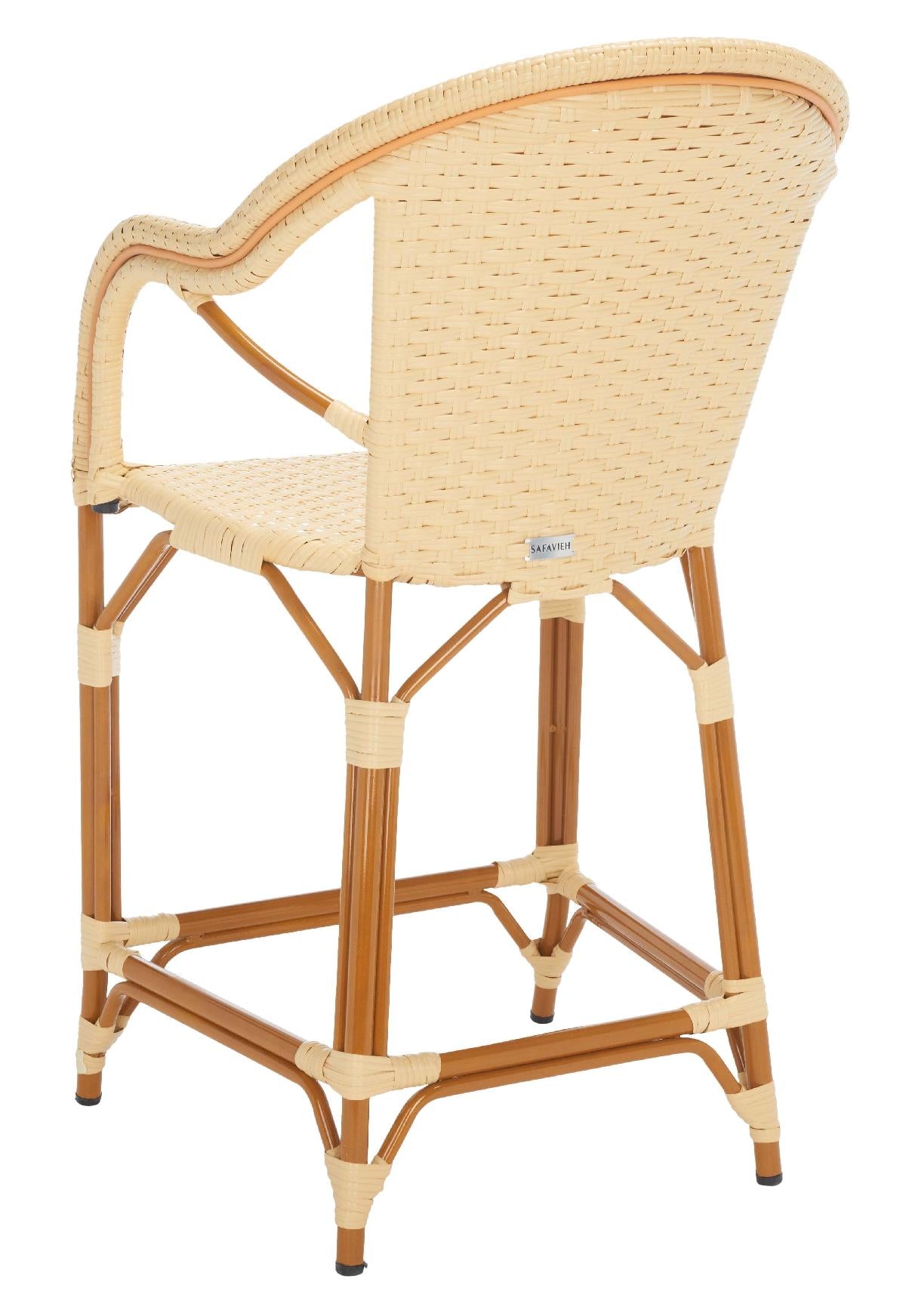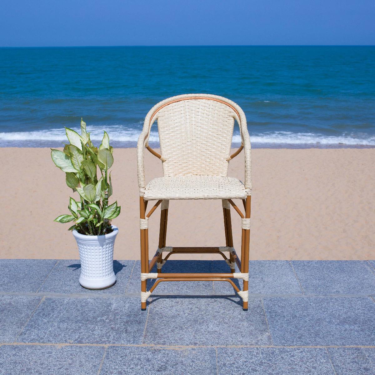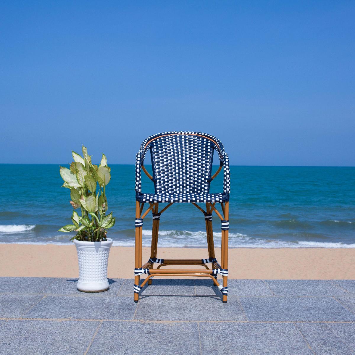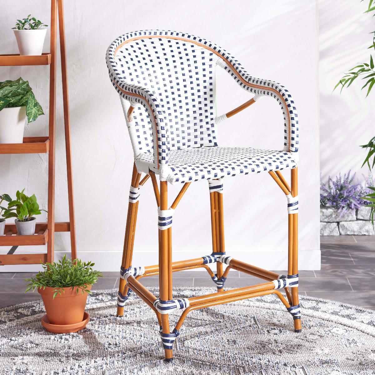 Bring breezy style to your al fresco dining with our California Counter Stool. it updates the time-honored French bistro chair with a gorgeous color palette. its woven contours and sheltering arms offer easy comfort. Featuring fuax wicker elegantly wrapped around an aluminum frame, our armchair captures textural beauty that can withstand the effect of sun, rain, and heat. easy to maintain and weather-friendly, our counter stool brings a dose of style and comfort to any high dining area in your patio or terrace.