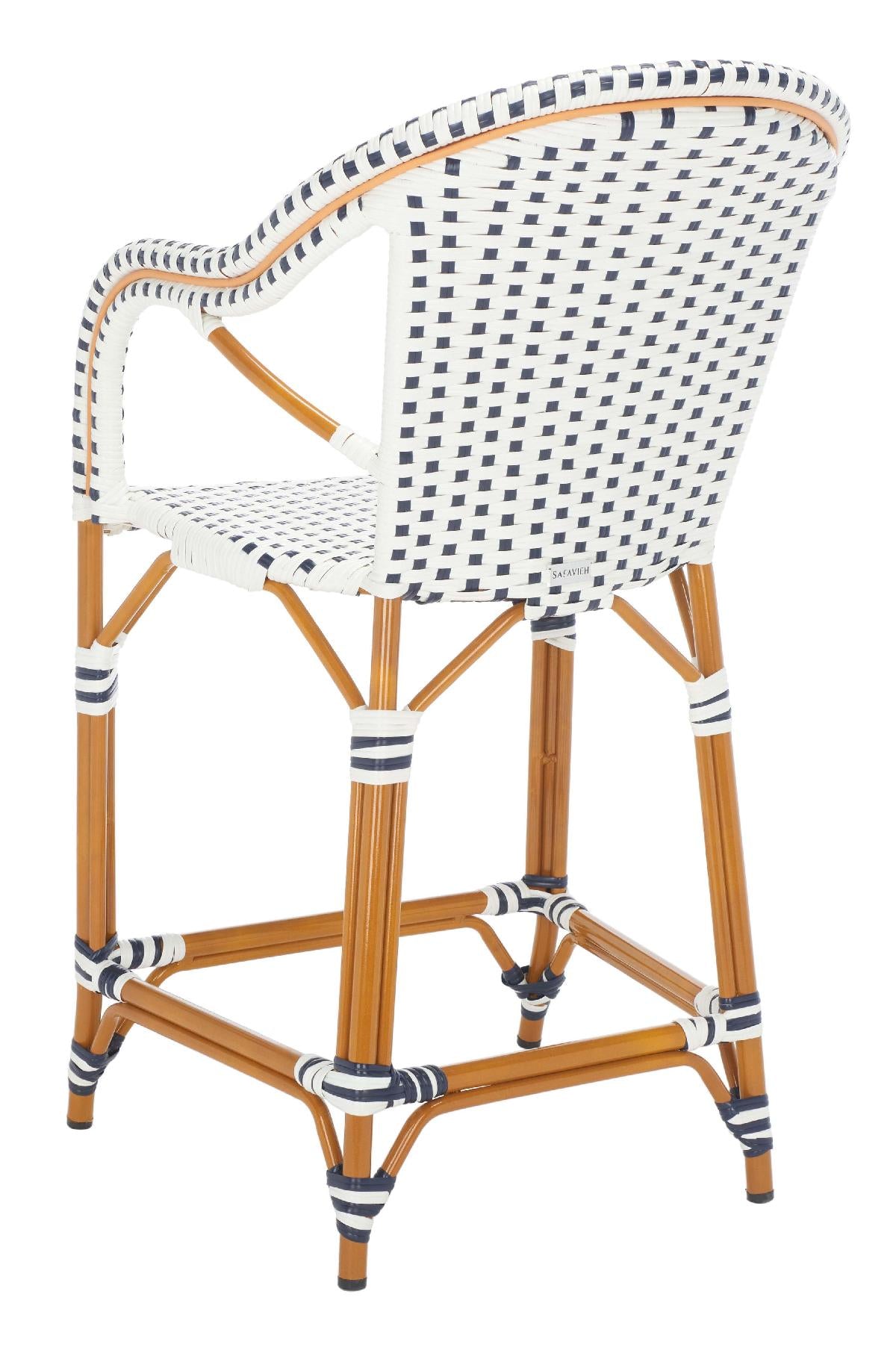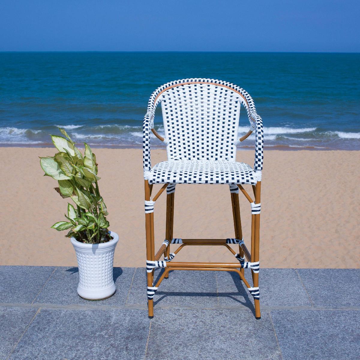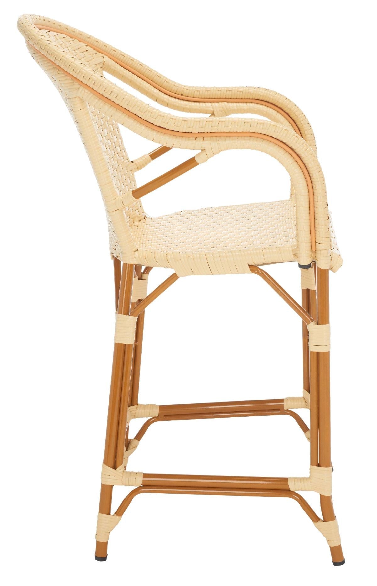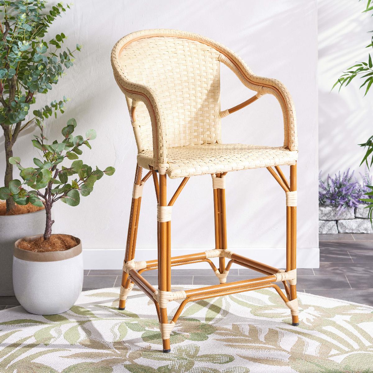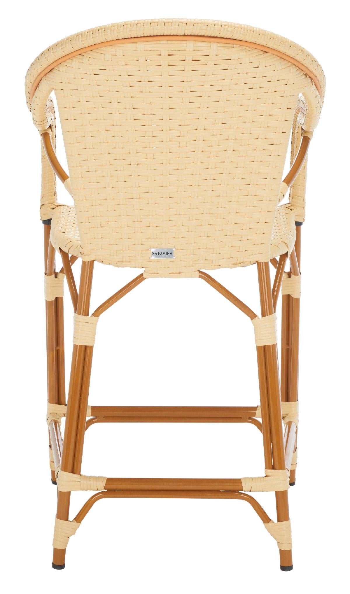 Bring breezy style to your al fresco dining with our California Counter Stool. it updates the time-honored French bistro chair with a gorgeous color palette. its woven contours and sheltering arms offer easy comfort. Featuring fuax wicker elegantly wrapped around an aluminum frame, our armchair captures textural beauty that can withstand the effect of sun, rain, and heat. easy to maintain and weather-friendly, our counter stool brings a dose of style and comfort to any high dining area in your patio or terrace.