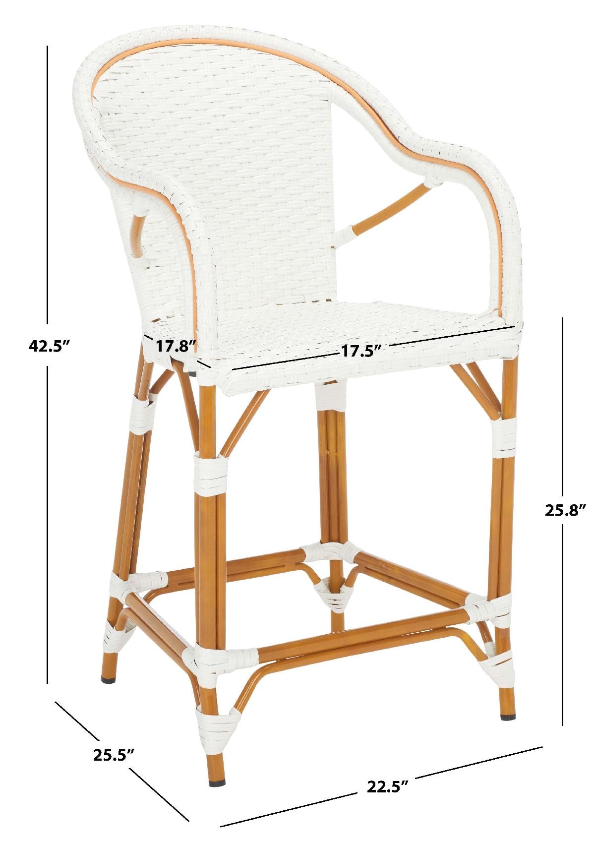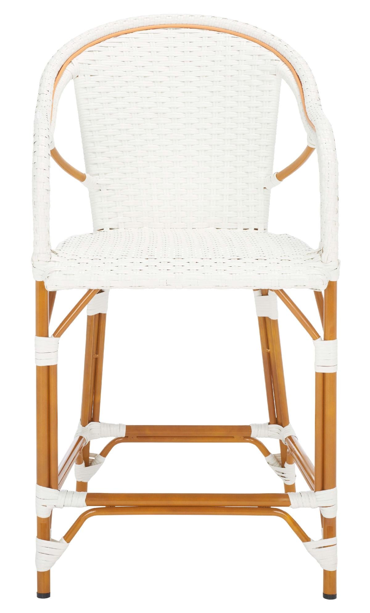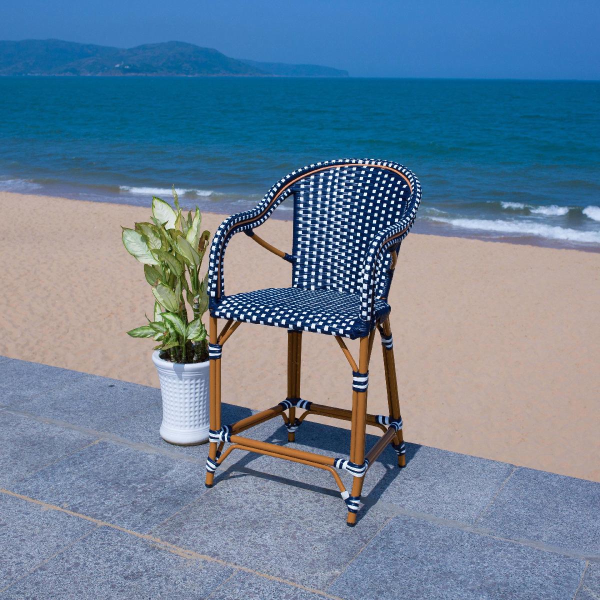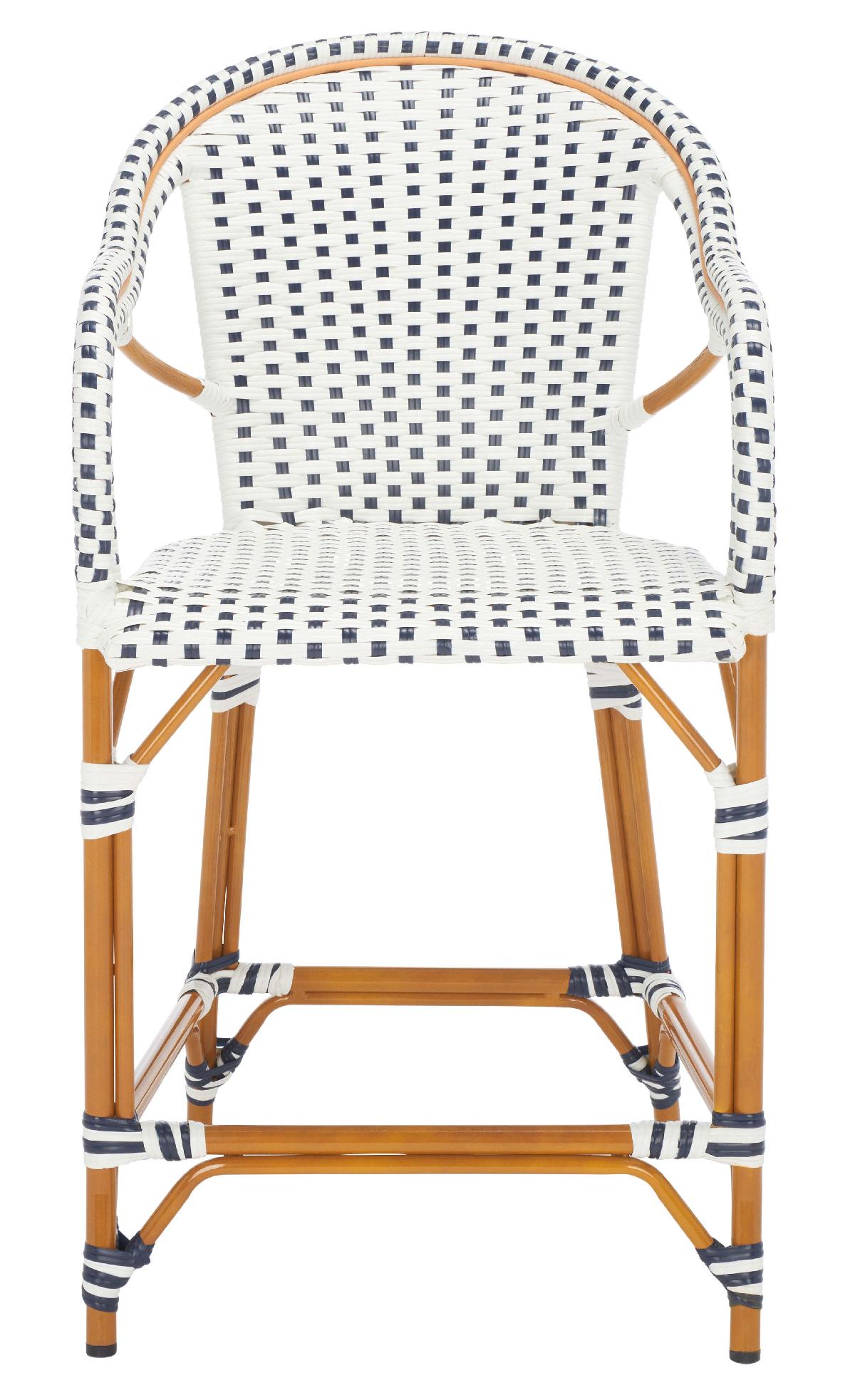 Bring breezy style to your al fresco dining with our California Counter Stool. it updates the time-honored French bistro chair with a gorgeous color palette. its woven contours and sheltering arms offer easy comfort. Featuring fuax wicker elegantly wrapped around an aluminum frame, our armchair captures textural beauty that can withstand the effect of sun, rain, and heat. easy to maintain and weather-friendly, our counter stool brings a dose of style and comfort to any high dining area in your patio or terrace.