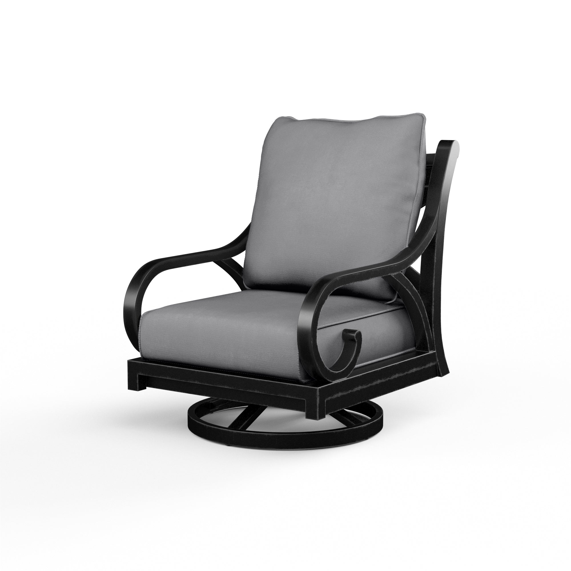 The Monterey Motion Club Chair incorporates organic lines with a stately frame, featuring a curled arm and cross back detail with seamless swivel and rocking motion. Monterey is constructed in long-lasting aluminum, with an Espresso powder coat and Old World Copper Rub, for a beautiful look and finish that will stand the test of time with minimal maintenance.
