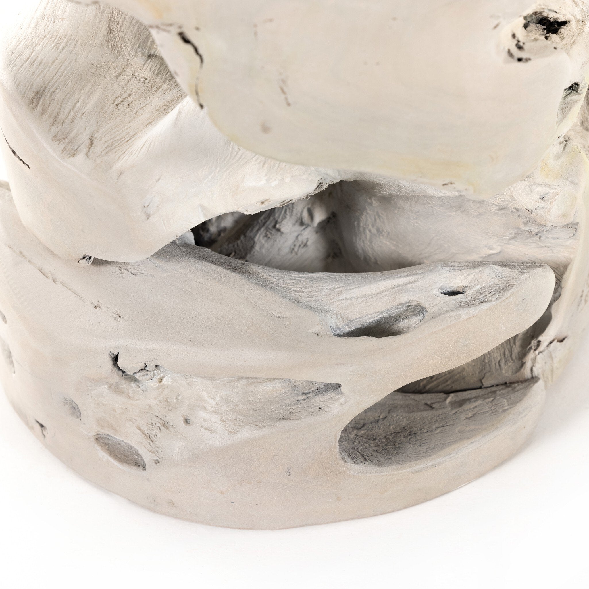 Ivory teak roots add a touch of organic texture to spaces indoors or out. Each has unique character, with dramatic highs and lows in the finish. Over time, teak weathers and greys in the sun for a found feel. Wood texture, color and graining will vary from piece to piece - a reflection of materials' organic nature. Cover or store indoors during inclement weather and when not in use.